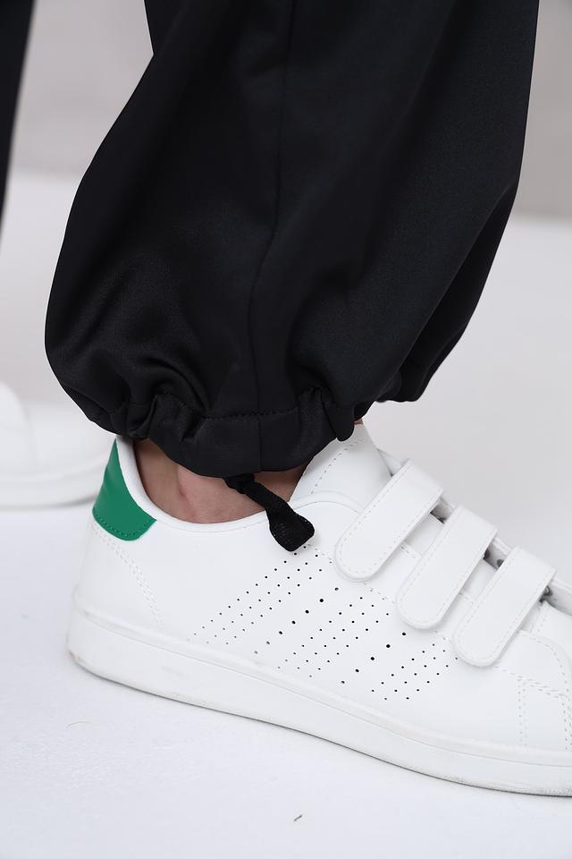 Брюки имеют прямой крой, обеспечивающий комфортную посадку по фигуре. Функциональные накладные карманы добавляют практичности и создают характерный образ карго. Застежка на пуговицах и молнии обеспечивает надежную фиксацию.