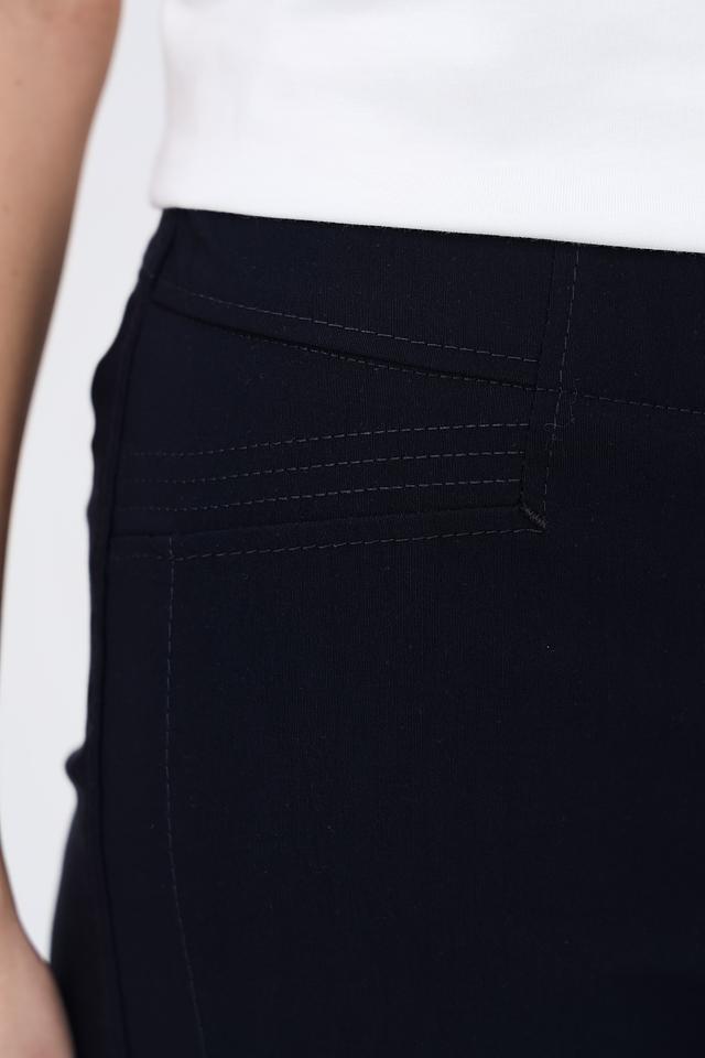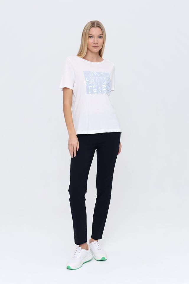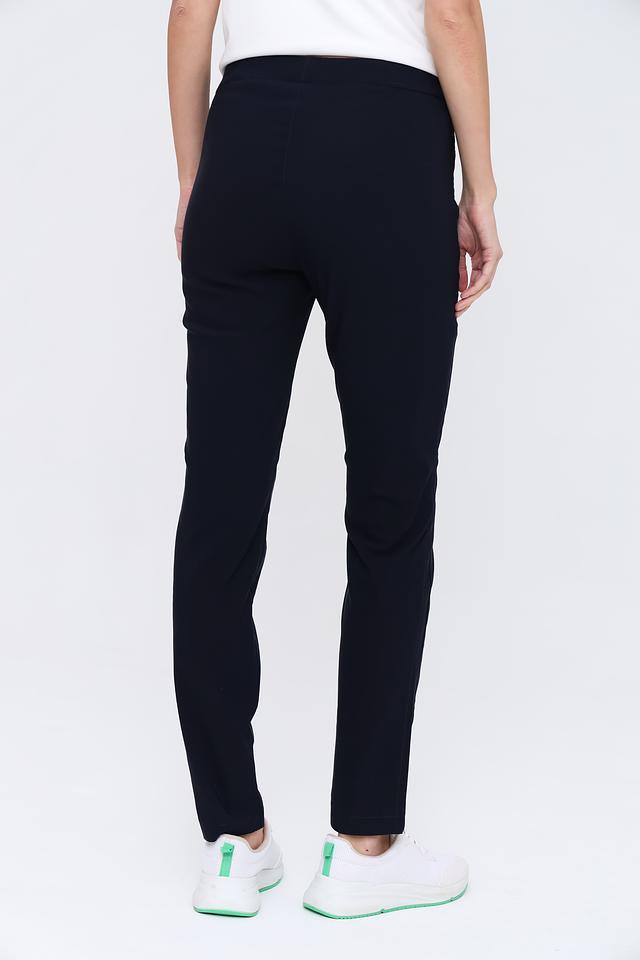 Брюки имеют прямой крой, который подчеркивает фигуру, не сковывая движения. Высокая посадка обеспечивает комфортную посадку по талии. Застежка – пояс на эластичной резинке.