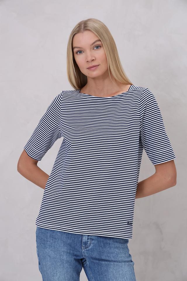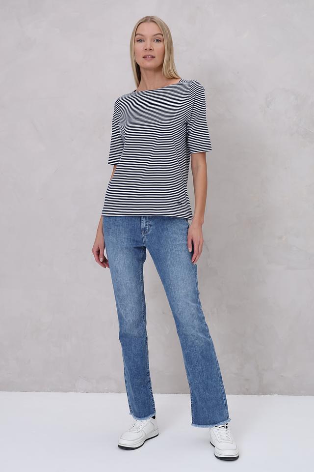 Женская футболка Bianca выполнена в классическую бело-синюю полоску. Модель с коротким рукавом и округлым вырезом горловины станет отличным дополнением к вашему образу. Изготовлена из мягкого хлопка с добавлением эластана. Состав: хлопок 92%, эластан 8%