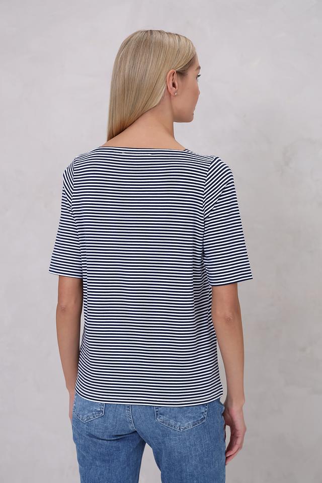 Эта стильная футболка от Bianca станет незаменимой вещью в вашем гардеробе. Классический дизайн в бело-синюю полоску делает ее универсальной и подходящей для различных стилей.
