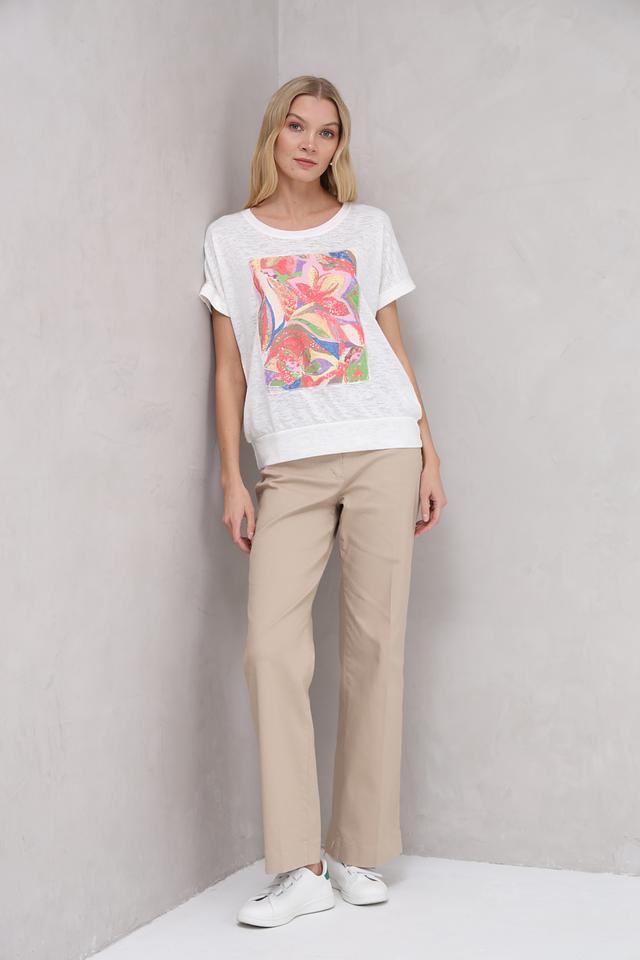 Белая футболка Bianca с ярким цветочным принтом – стильное и комфортное решение для повседневного образа. Изготовлена из мягкого сочетания полиэстера и вискозы, обеспечивающего приятные ощущения при носке. Состав: полиэстер 64%, вискоза 36%