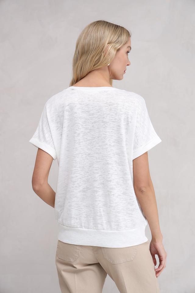 Модель имеет свободный крой, который обеспечивает комфорт и свободу движений. Короткие рукава и круглый вырез горловины делают ее универсальной и подходящей для различных случаев.