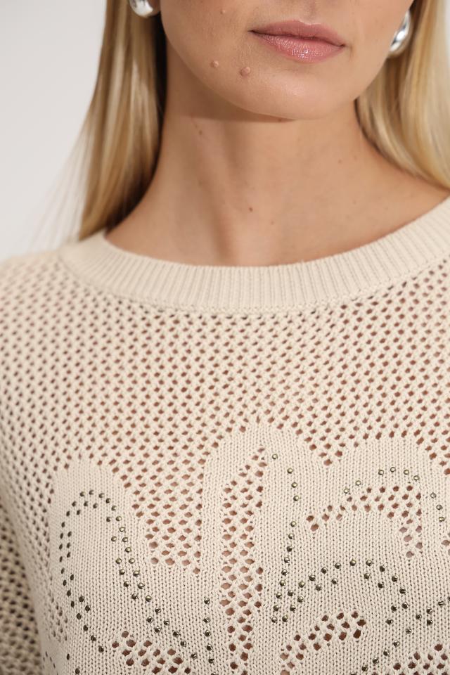 Пуловер Bianca с кружевной вставкой бежевый
