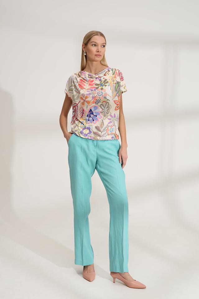 Блуза имеет короткие рукава и округлый вырез горловины. Свободный крой не сковывает движений, а лёгкая ткань позволяет коже дышать. Эта блуза станет прекрасным дополнением к вашему летнему гардеробу и позволит создать множество стильных образов.