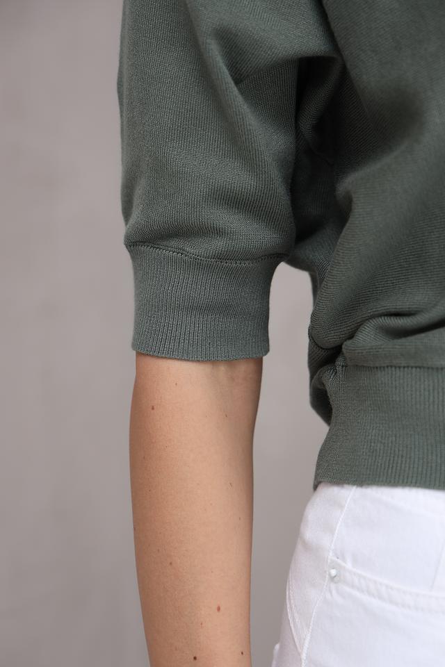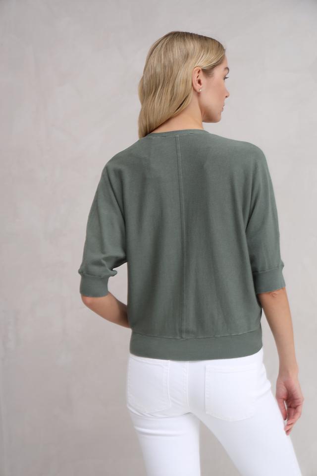 Жакет имеет V-образный вырез и застегивается на ряд пуговиц. Рукава длиной 3/4 придают образу лёгкость и непринуждённость. Прямой крой обеспечивает комфортную посадку по фигуре.