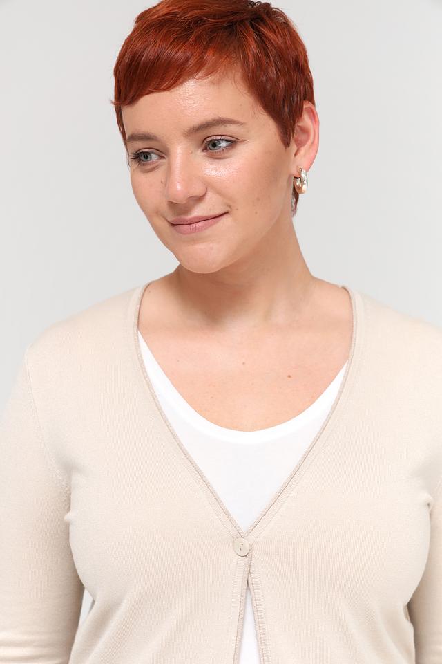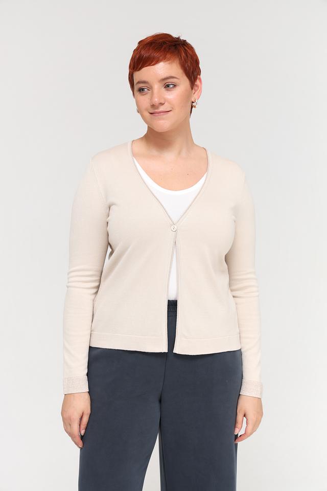 Бежевый жакет Bianca – это стильная и удобная модель с V-образным вырезом и длинными рукавами. Жакет выполнен из мягкой вискозы с добавлением полиамида и металлизированной нити, что придает ему легкий блеск. Состав: вискоза 68%, полиамид 29%, метализ.нить 3%