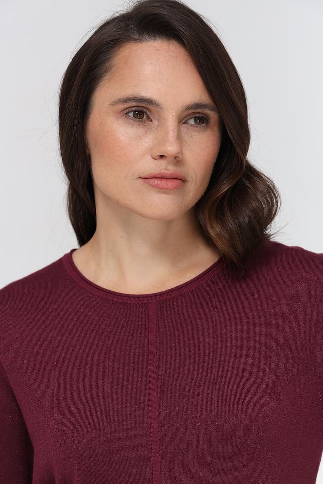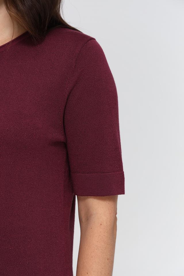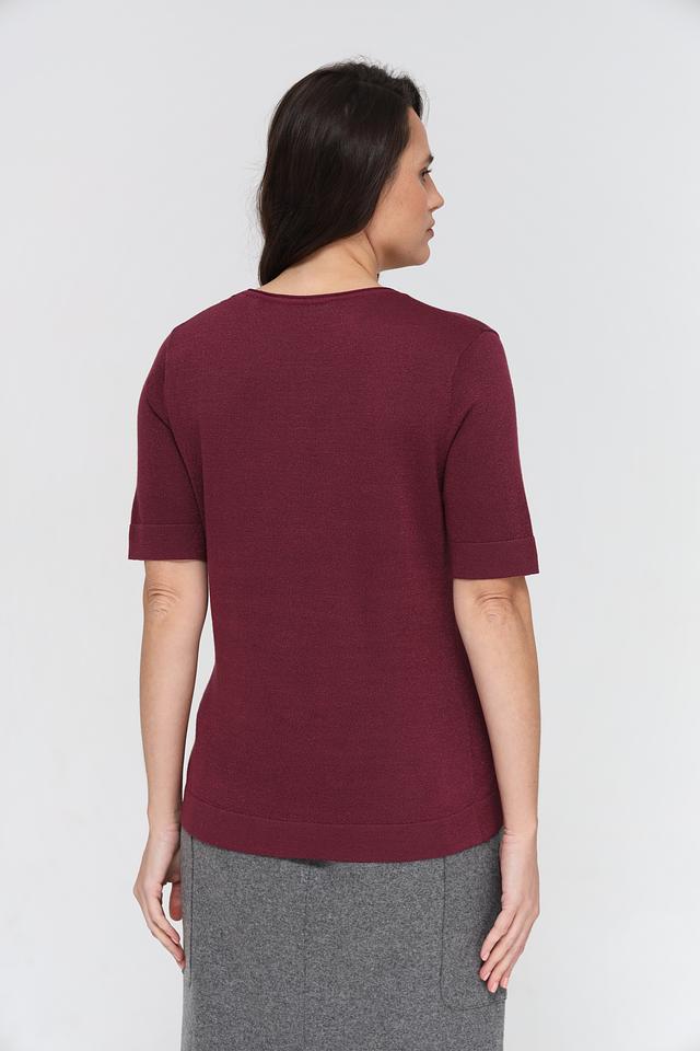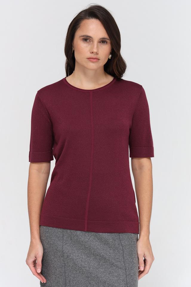 Бордовый пуловер от Bianca с короткими рукавами и вертикальным швом. Изготовлен из мягкой вискозы с добавлением металлизированной нити, что придает изделию деликатный блеск. Идеально дополнит повседневный и офисный гардероб. Состав: вискоза 80%, метализ.нить 20%