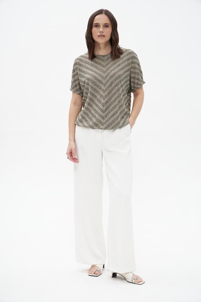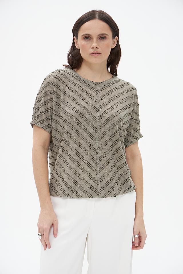 Женская футболка Bianca бежевого цвета с оригинальным геометрическим узором. Изготовлена из сочетания полиэстера и вискозы, обеспечивающих комфорт и приятные тактильные ощущения. Стильный и универсальный вариант для создания повседневных образов. Состав: полиэстер 68%, вискоза 32%