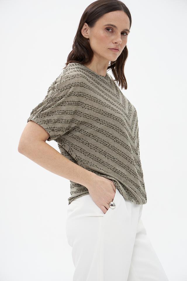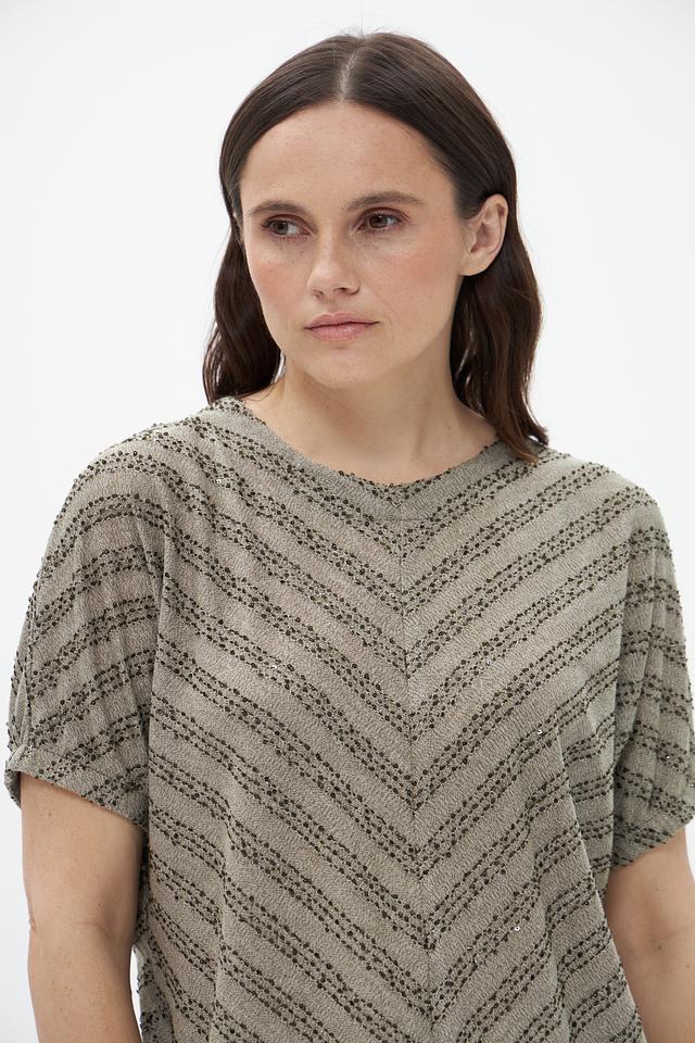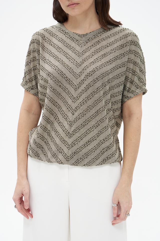 Эта футболка от Bianca станет отличным дополнением к вашему гардеробу. Она выполнена в бежевом цвете и украшена выразительным геометрическим узором, который придает ей особый шарм.