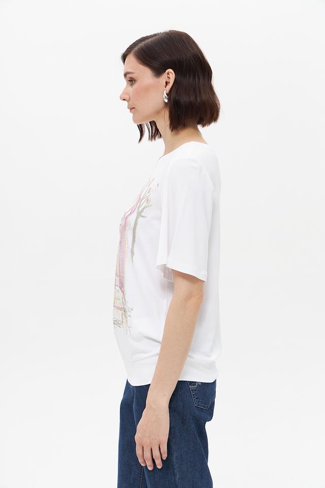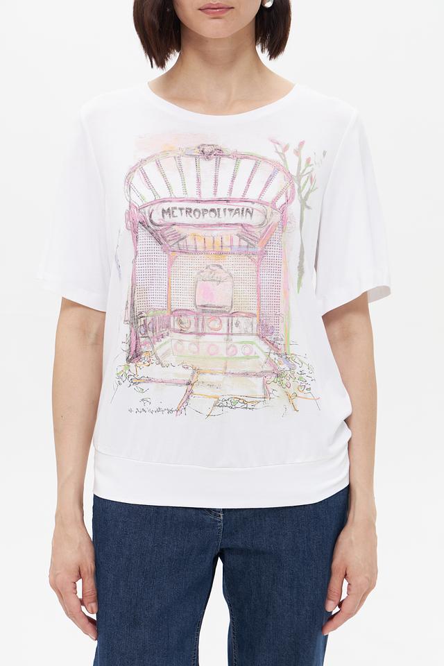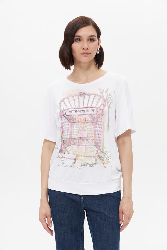 Белая футболка Bianca с оригинальным принтом в виде изображения парижского метро. Изготовлена из мягкой вискозы с добавлением эластана для комфорта и хорошей посадки. Стильный и удобный вариант для повседневного образа. Состав: вискоза 92%, эластан 8%