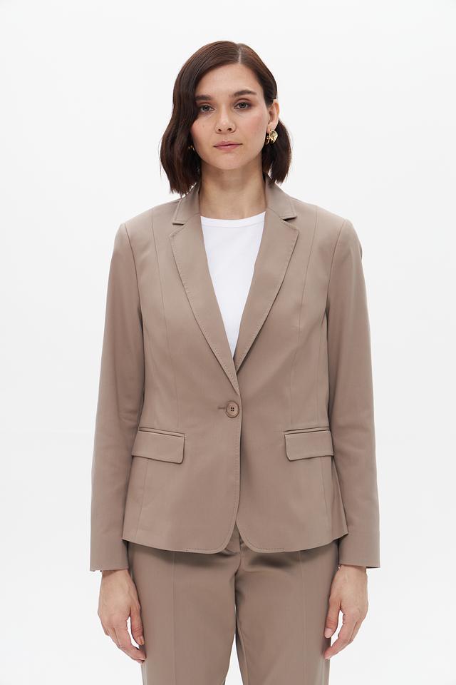 Бежевый жакет Bianca приталенного силуэта выполнен из хлопка с добавлением полиэстера и эластана. Классический крой и лаконичный дизайн делают этот жакет универсальным элементом гардероба. Состав: хлопок 72%, полиэстер 24%, эластан 4%