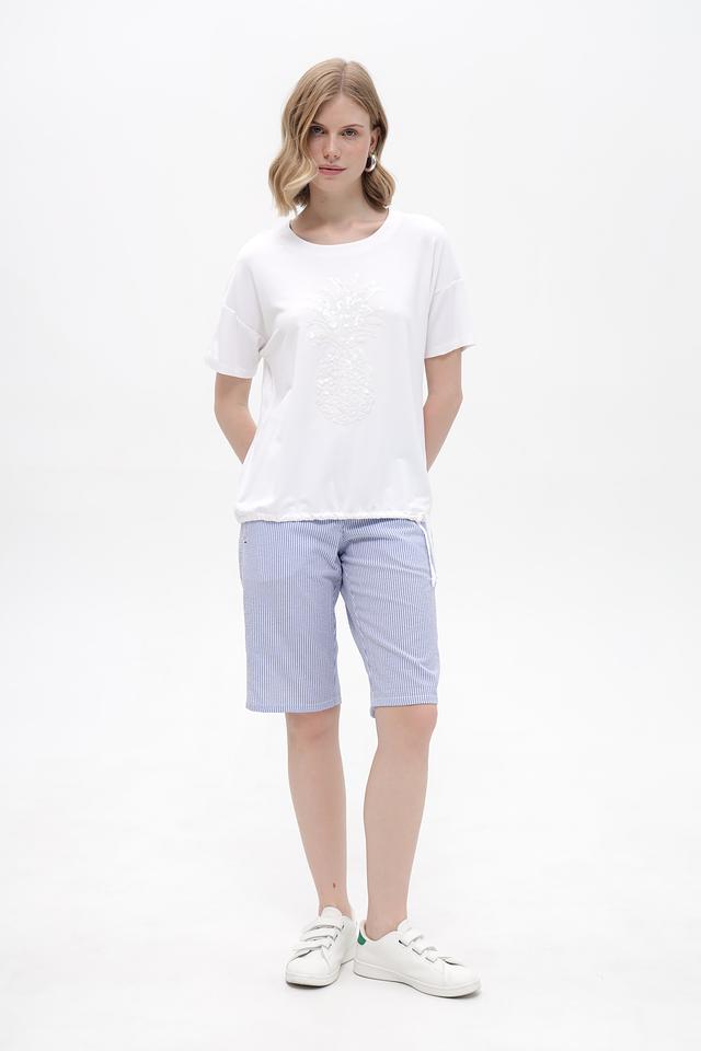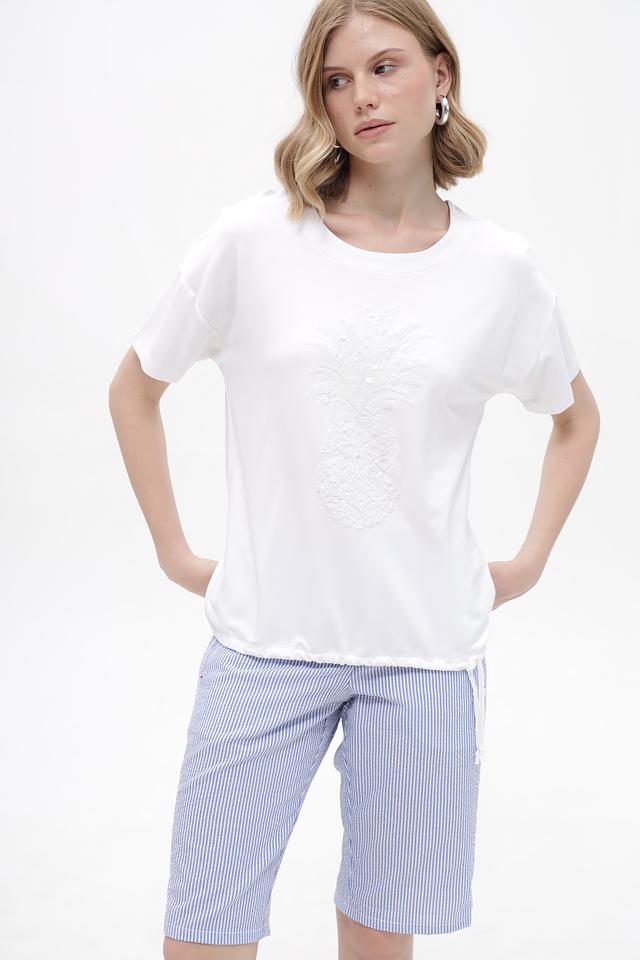 Белая футболка Bianca с принтом ананаса – стильная и комфортная модель из вискозы с добавлением эластана. Футболка имеет свободный крой и короткий рукав, идеально подходит для создания повседневных образов. Состав: вискоза 92%, эластан 8%