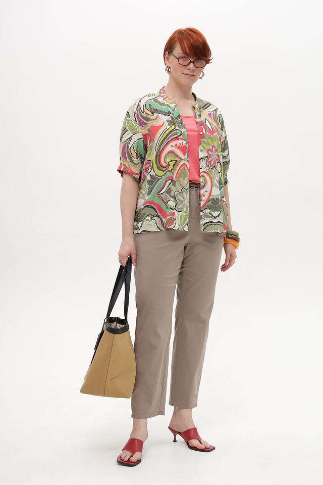 Благодаря свободному крою, блуза комфортно сидит по фигуре и не сковывает движений. Она отлично сочетается с брюками, юбками и джинсами, позволяя создавать разнообразные стильные комплекты.