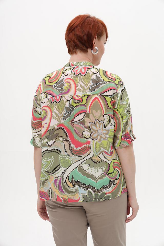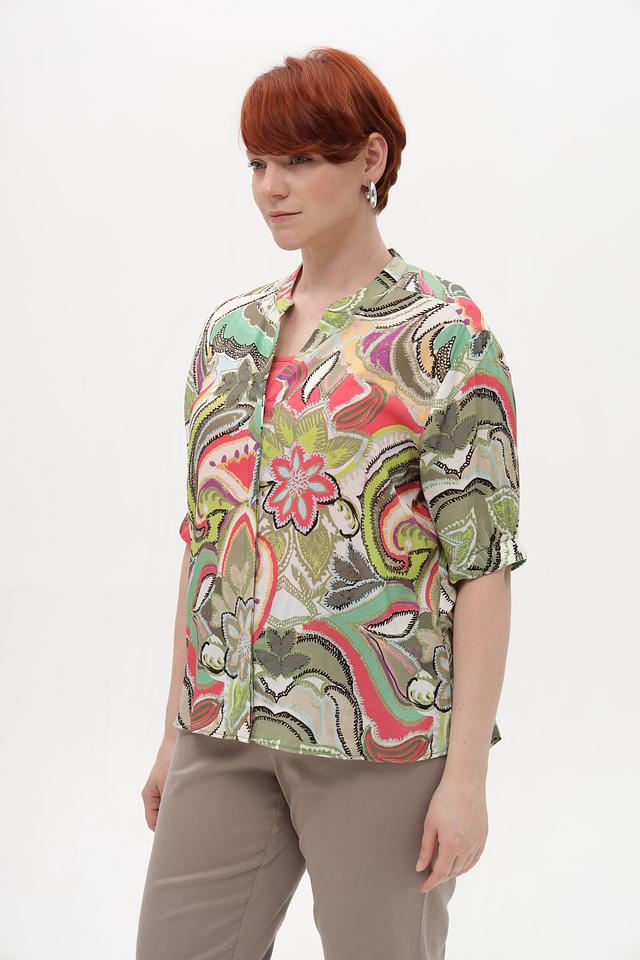 Блуза Bianca зеленого цвета с ярким цветочным принтом станет отличным дополнением к вашему гардеробу. Модель выполнена из 100% вискозы, что обеспечивает комфорт и легкость в носке. Блуза имеет короткий рукав и V-образный вырез. Состав: вискоза 100%