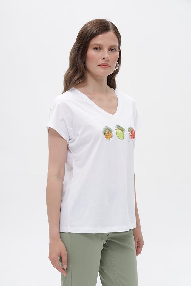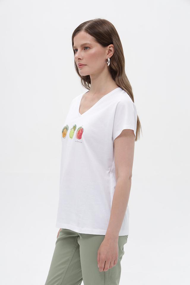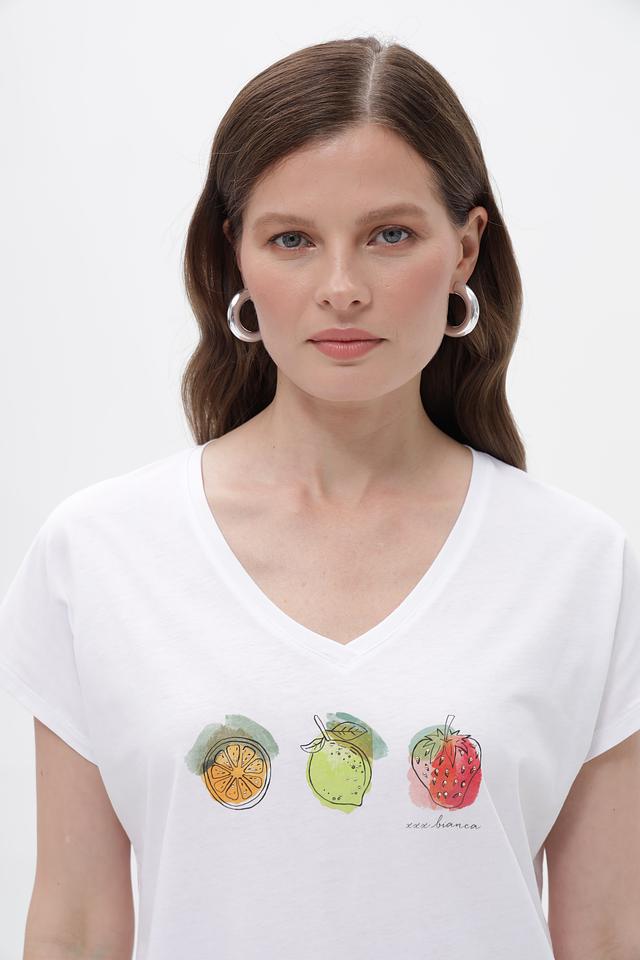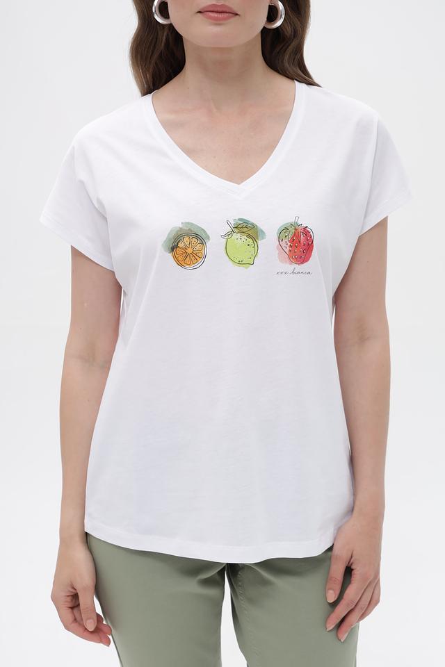 Белая футболка Bianca с ярким принтом в виде фруктов станет отличным дополнением к вашему летнему гардеробу. Изготовлена из 100% хлопка, обеспечивая комфорт и воздухопроницаемость. Состав: хлопок 100%