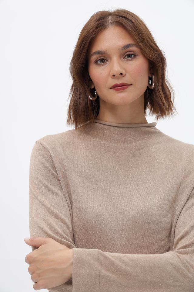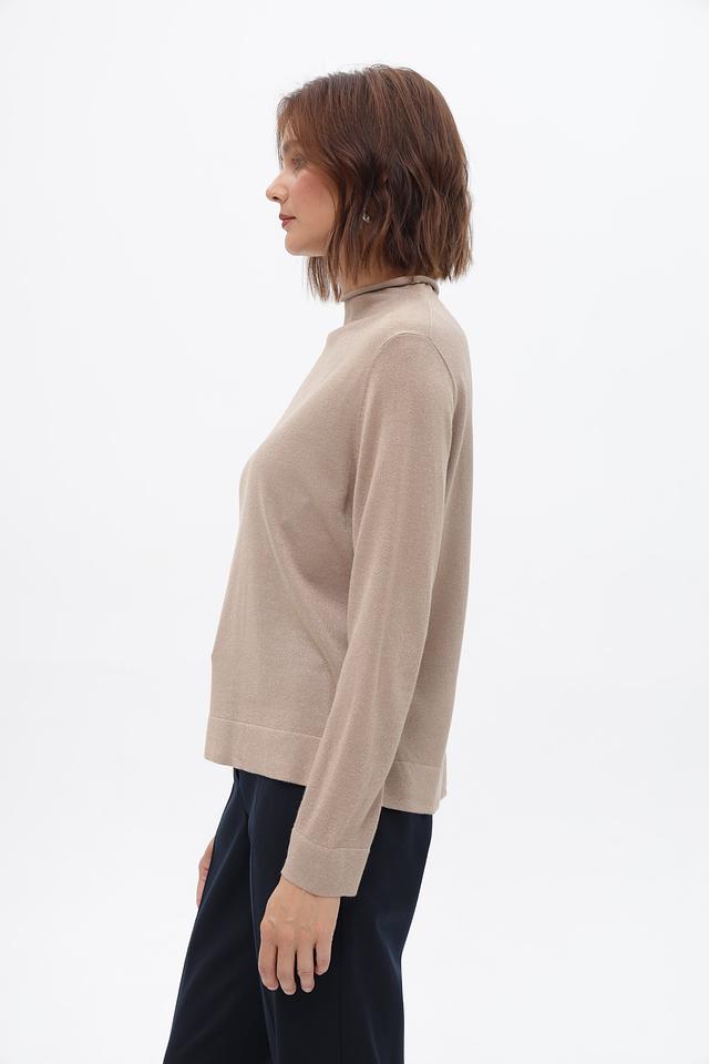 Бежевый пуловер от Bianca с добавлением люрекса – это стильное и комфортное решение для создания повседневных образов. Изготовлен из мягкой вискозы, отличается приятной текстурой и деликатным блеском. Состав: вискоза 80%, метализ.нить 20%