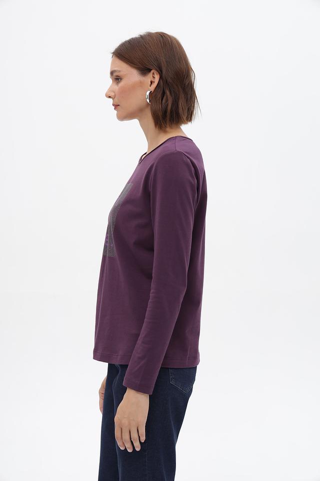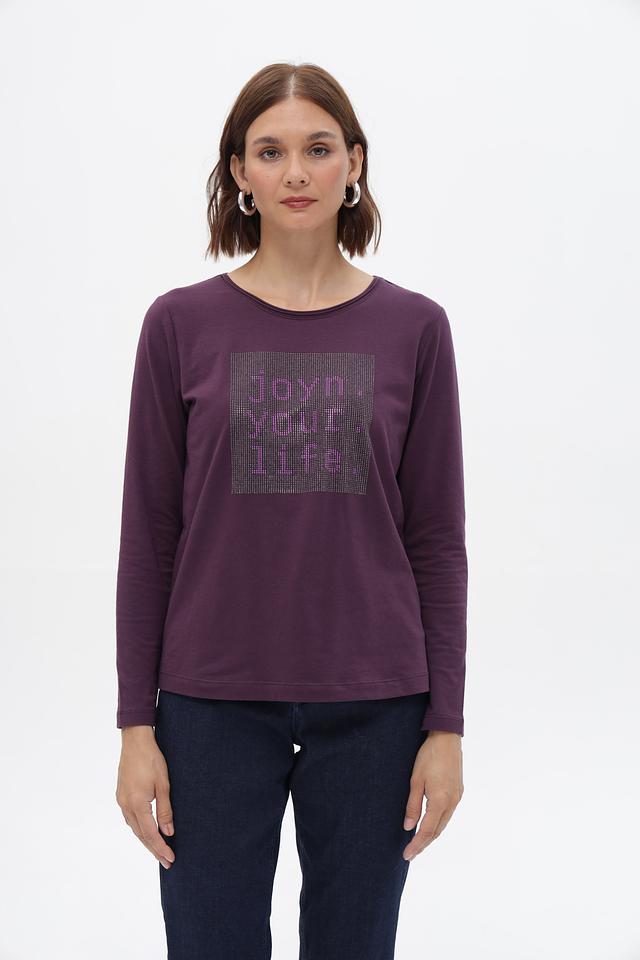 Футболка Bianca пурпурного цвета с длинным рукавом и ярким принтом. Изготовлена из мягкого хлопка с добавлением эластана для комфорта и хорошей посадки. Идеально подойдет для создания стильного повседневного образа. Состав: хлопок 92%, эластан 8%