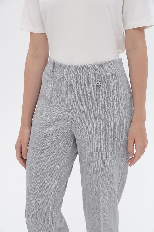 Серые брюки Bianca из полиэстера с добавлением вискозы и эластана. Классический крой, высокая посадка и клетчатый принт делают эту модель универсальным элементом гардероба. Состав: полиэстер 84%, вискоза 12%, эластан 4%