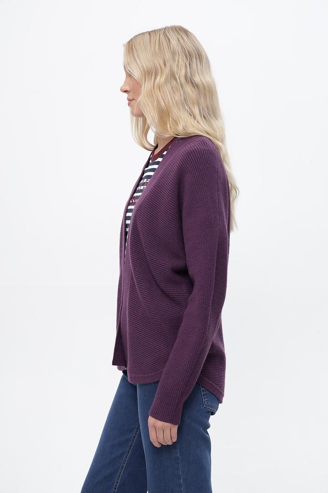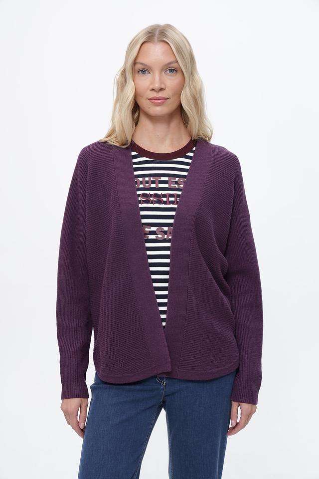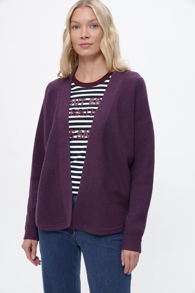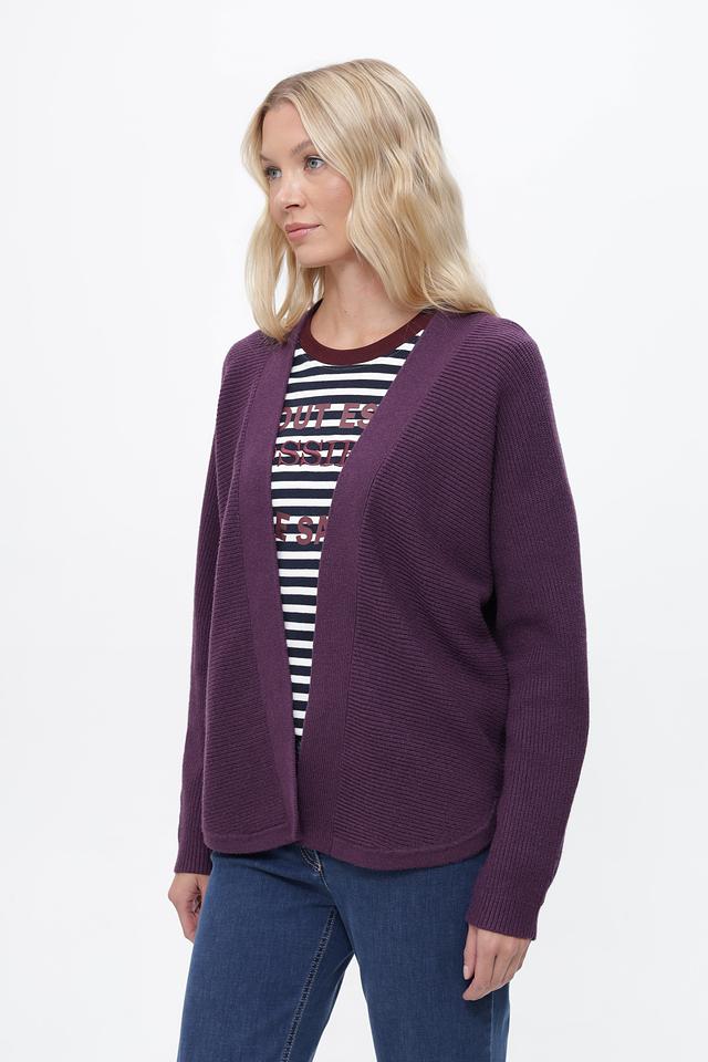 Пурпурный жакет от Bianca выполнен из мягкого трикотажа с текстурной вязкой. Модель свободного кроя с V-образным вырезом и длинными рукавами. Состав: вискоза, полиэстер, полиамид. Состав: вискоза 53%, полиэстер 24%, полиамид 23%