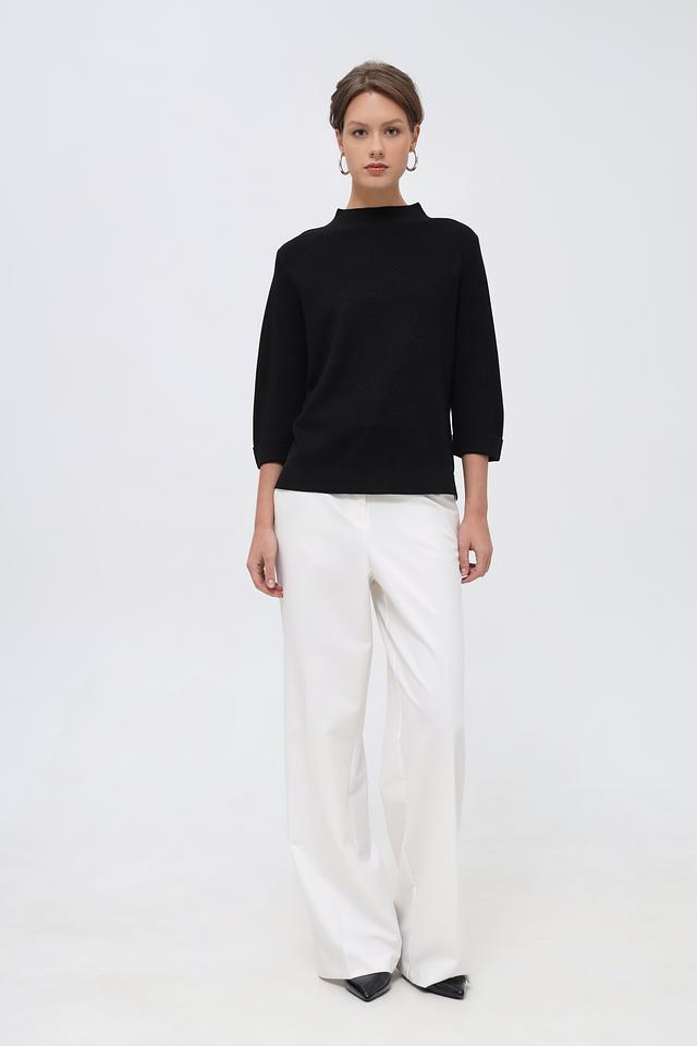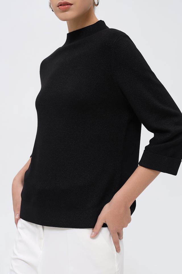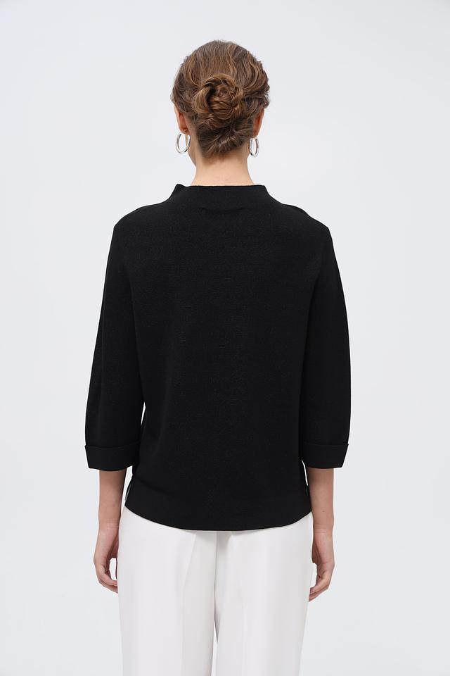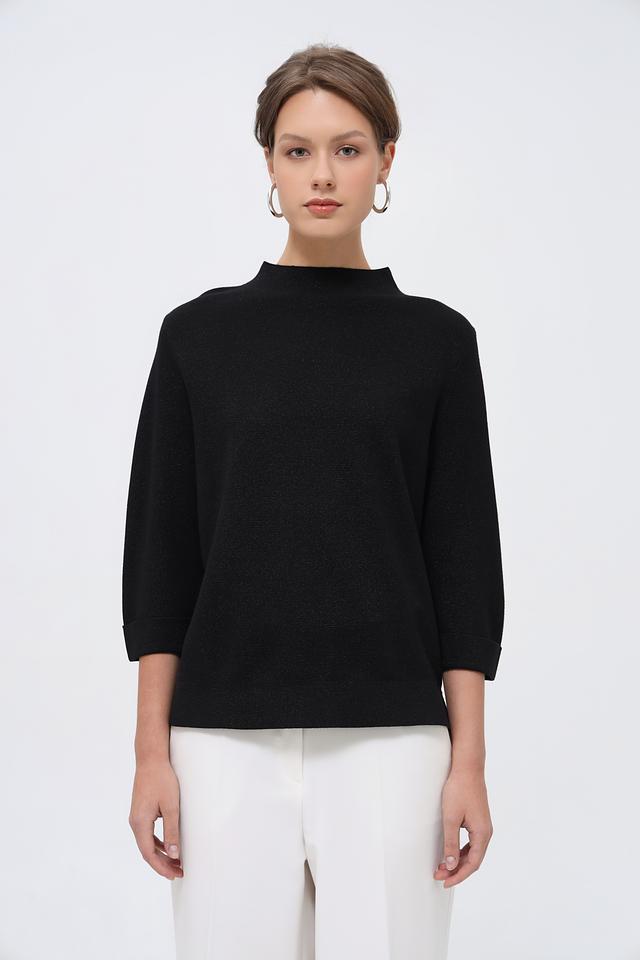Чёрный пуловер Bianca с рукавом 3/4 – элегантная модель из вискозы, сочетающая комфорт и стиль. Полукруглый вырез горловины и лаконичный крой делают этот пуловер универсальным элементом гардероба. Состав: вискоза 80%, метализ.нить 20%