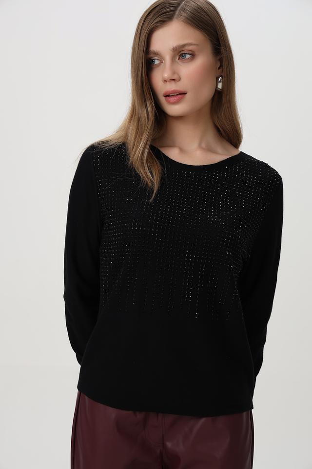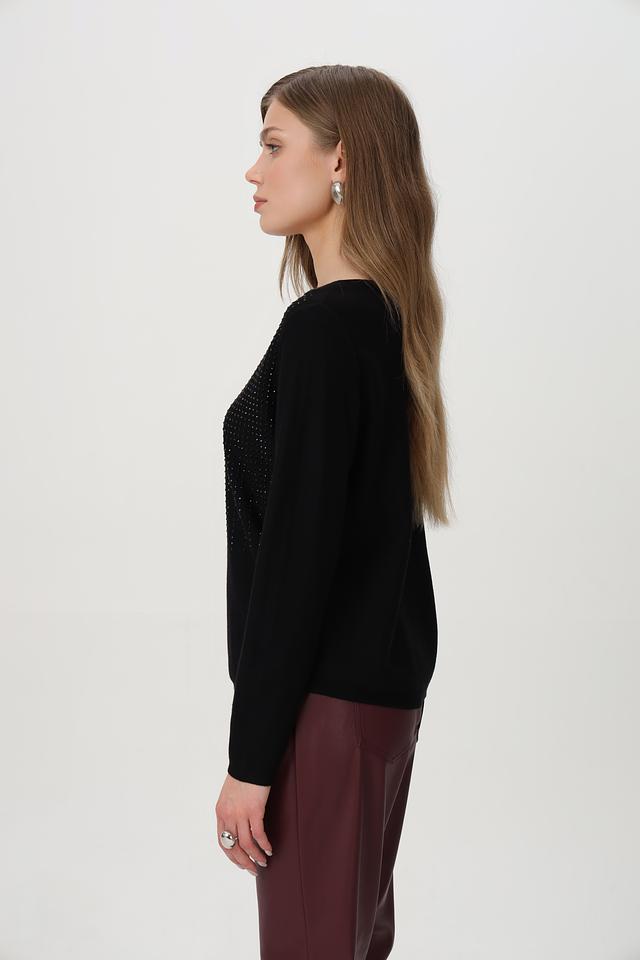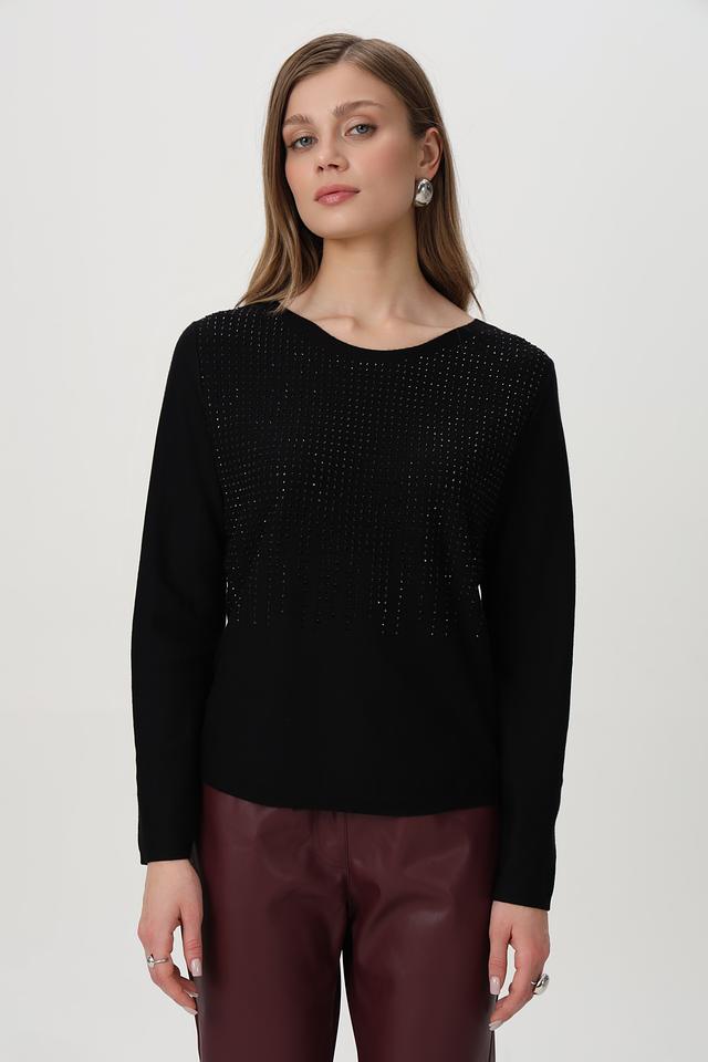 Чёрный пуловер Bianca с эффектным декором из пайеток станет стильным дополнением к вашему гардеробу. Изготовлен из мягкой вискозы с добавлением полиамида и металлизированной нити для деликатного блеска. Состав: вискоза 68%, полиамид 29%, метализ.нить 3%