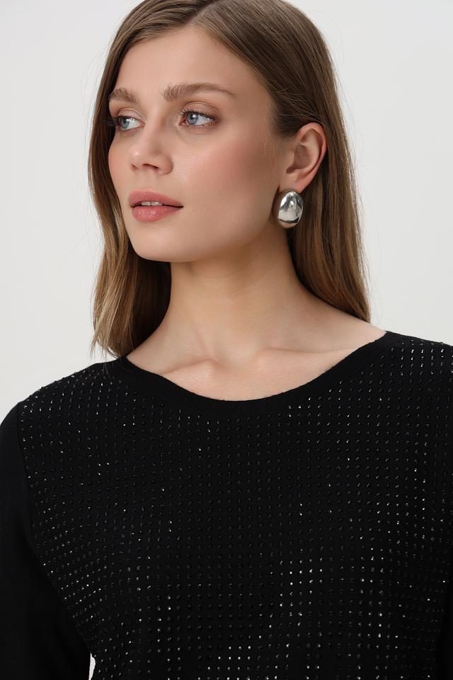 Этот пуловер прекрасно сочетается с брюками, юбками и джинсами, позволяя создавать разнообразные комплекты на любой случай. Он идеально подойдет для вечерних выходов, особых мероприятий или для повседневной носки, если вы хотите добавить немного блеска в свой образ.