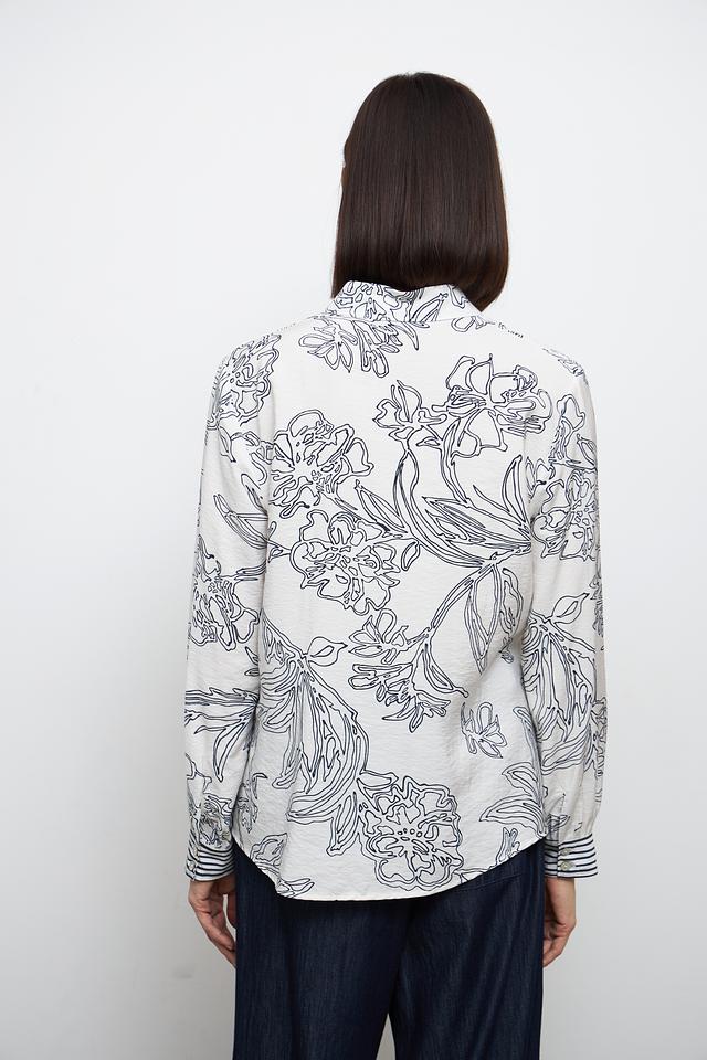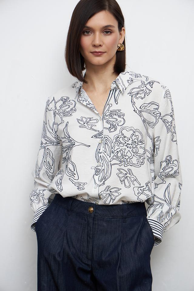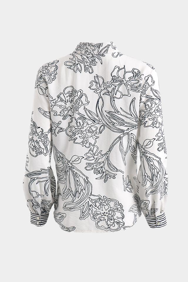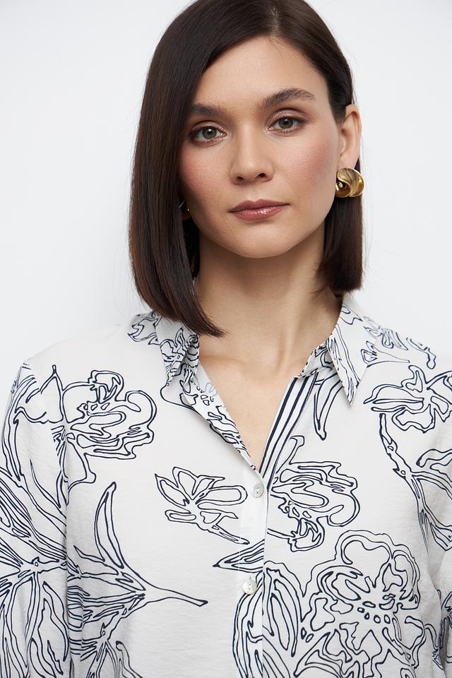 Эта блуза от Bianca выполнена из мягкой и приятной к телу вискозы с добавлением полиамида. Преобладающий цвет – белый, украшенный графичным цветочным принтом в чёрном цвете.