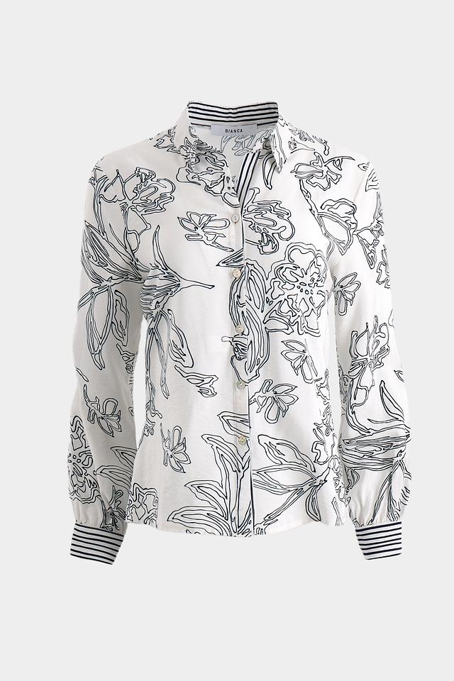 Белая блуза Bianca с оригинальным цветочным принтом станет стильным дополнением к вашему гардеробу. Модель выполнена из лёгкой вискозы, что обеспечивает комфорт в носке. Отличный выбор для создания элегантного образа. Состав: вискоза 87%, полиамид 13%