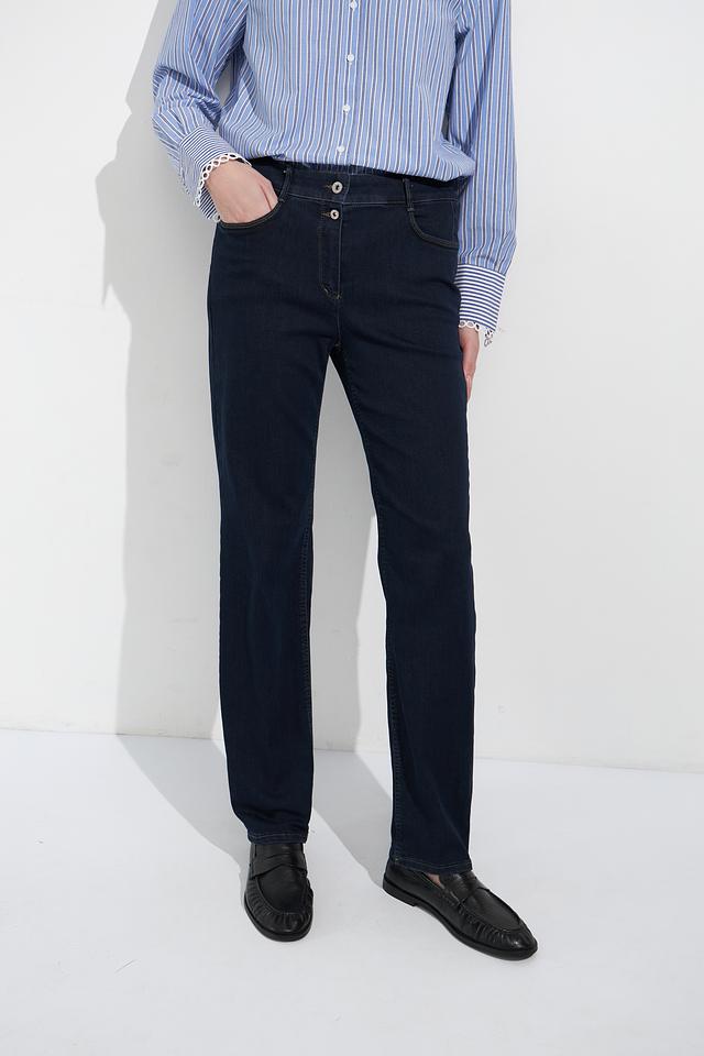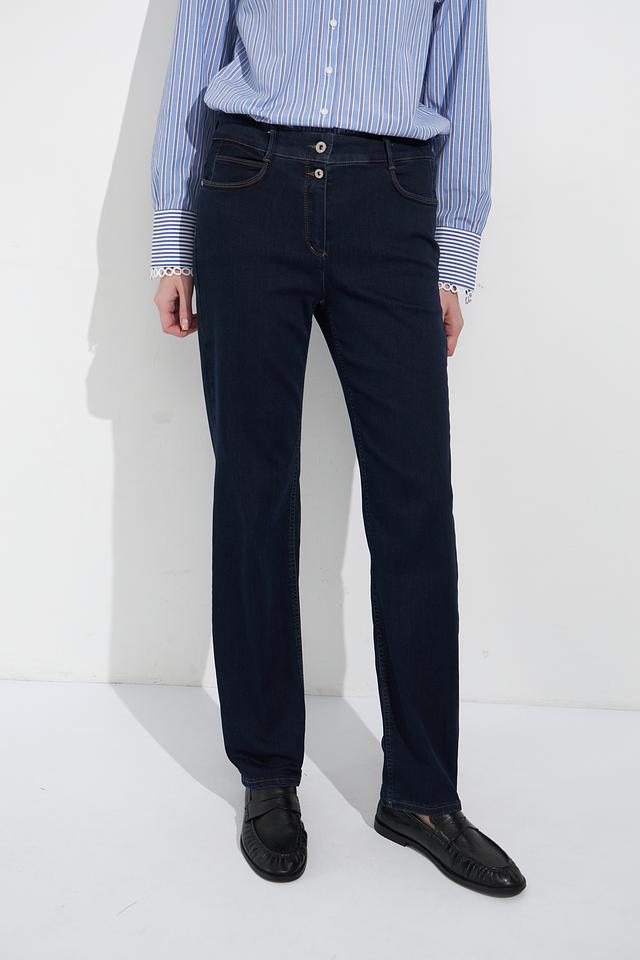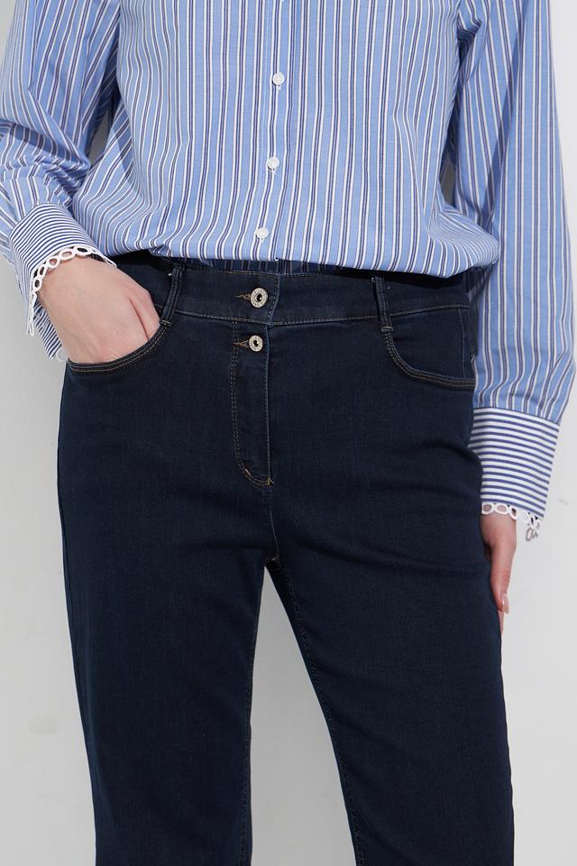Джинсы Bianca тёмно-синего цвета с оригинальной декоративной отделкой по боковым швам. Классический крой и комфортная посадка делают эти джинсы отличным выбором для повседневного гардероба. Состав: хлопок 71%, полиэстер 25%, эластан 4%