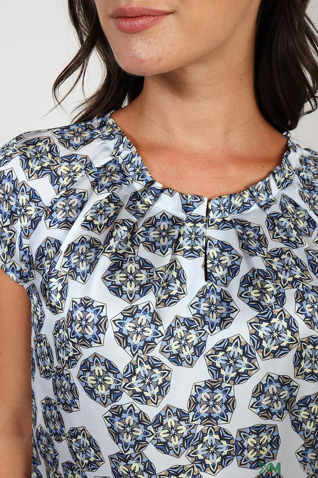 Блуза Bianca голубого цвета с ярким цветочным принтом станет отличным дополнением к вашему гардеробу. Модель выполнена из полиэстера, имеет короткий рукав и округлый вырез горловины. Состав: полиэстер 100%