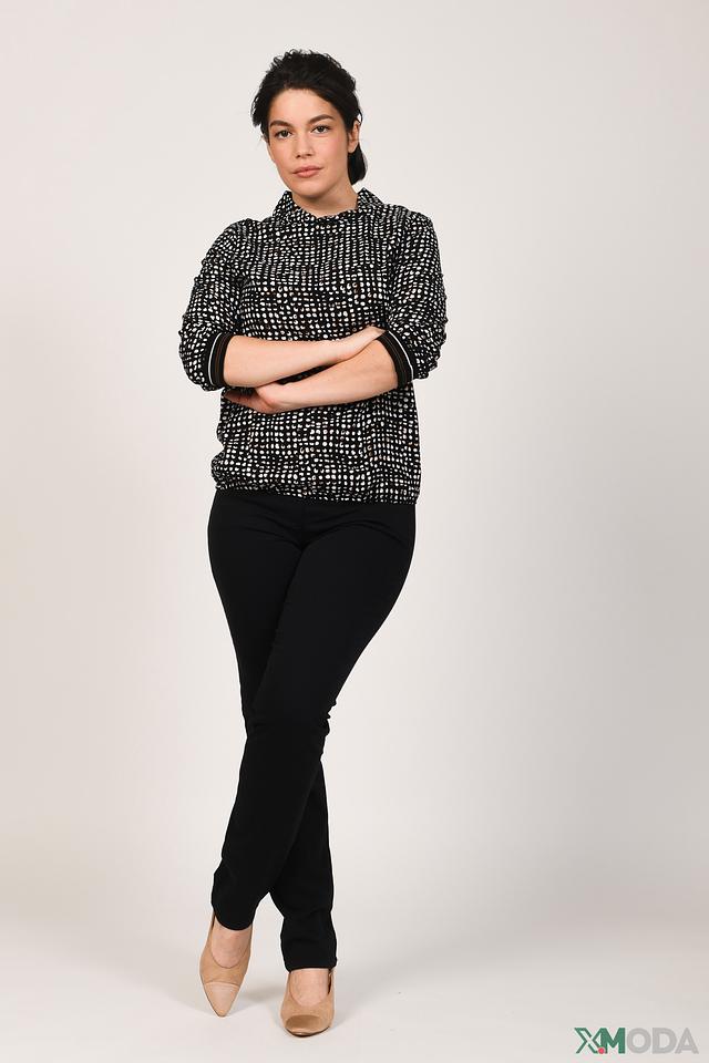 Эта блуза от Bianca – отличный выбор для создания элегантного и современного образа. Блуза выполнена в чёрно-белой цветовой гамме с абстрактным принтом, который придает ей особую изысканность.
