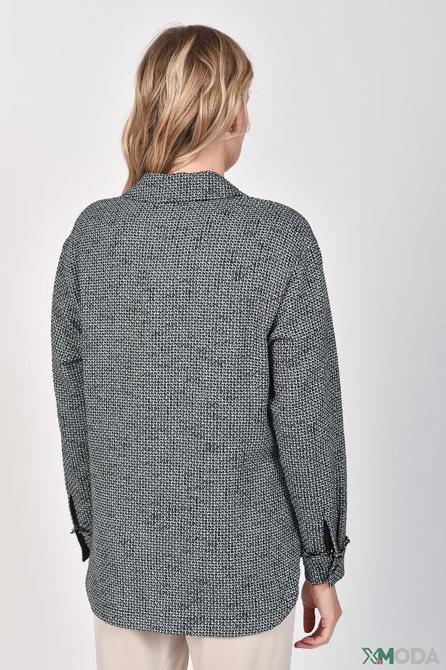 Жакет имеет прямой силуэт, который подходит для любой фигуры. Застежка на пуговицы позволяет регулировать степень прилегания. Длинные рукавы с небольшими разрезами в манжетах добавляют образу непринужденности.