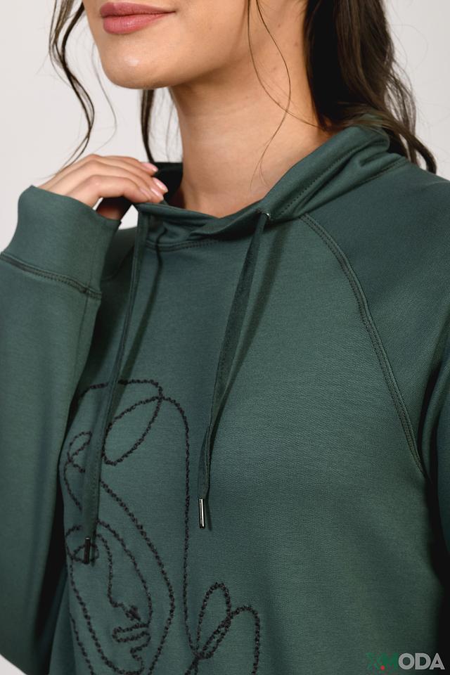 Этот стильный пуловер от бренда Bianca выполнен в приятном зелёном цвете и украшен оригинальным принтом в виде изображения лица. Модель имеет свободный крой, что обеспечивает комфорт в носке.