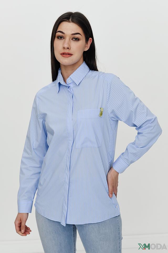 Эта рубашка от Bianca станет отличным дополнением к вашему гардеробу. Она выполнена в голубую полоску, что придает ей свежий и легкий вид.