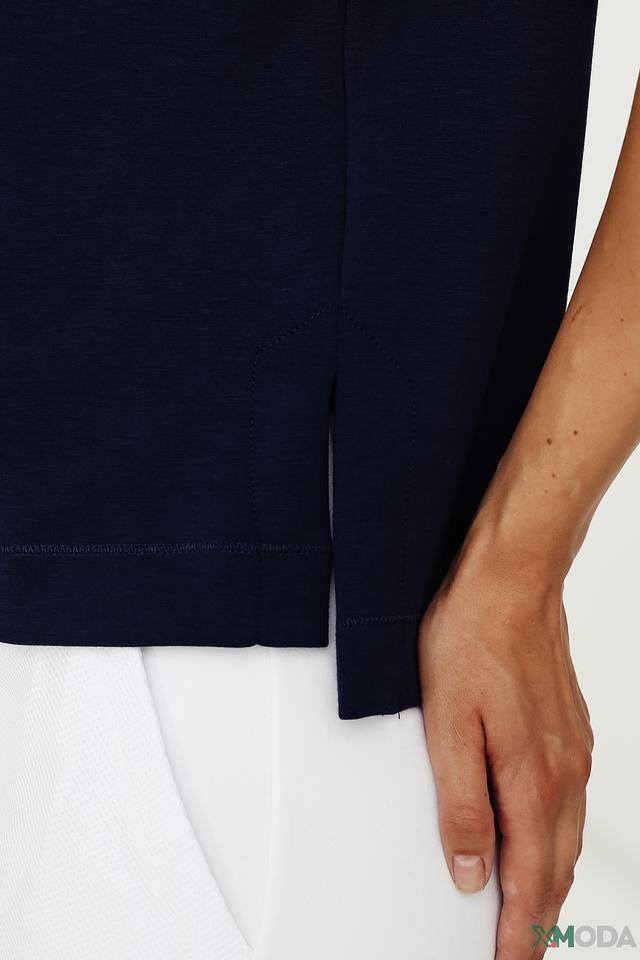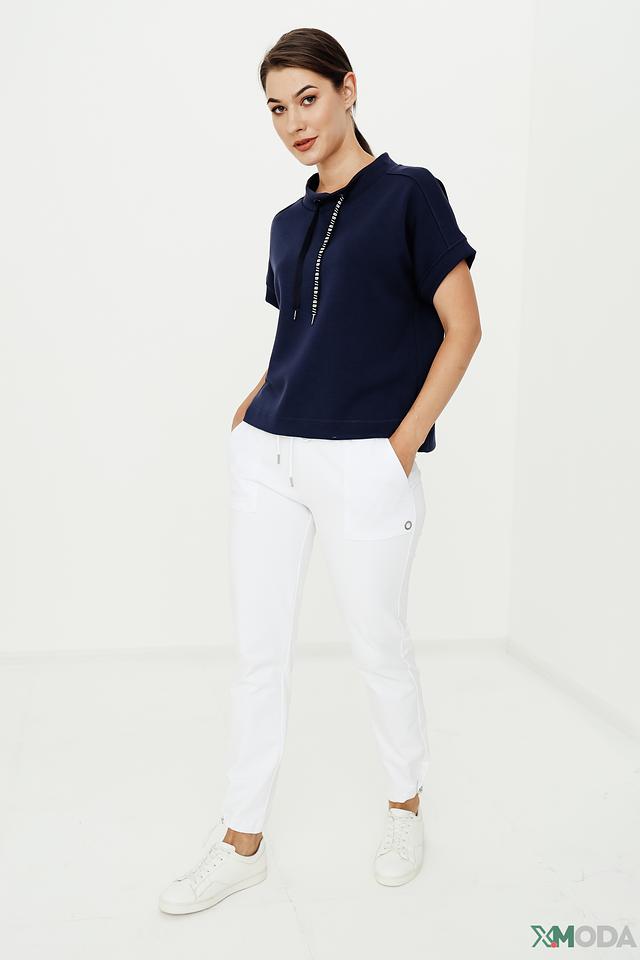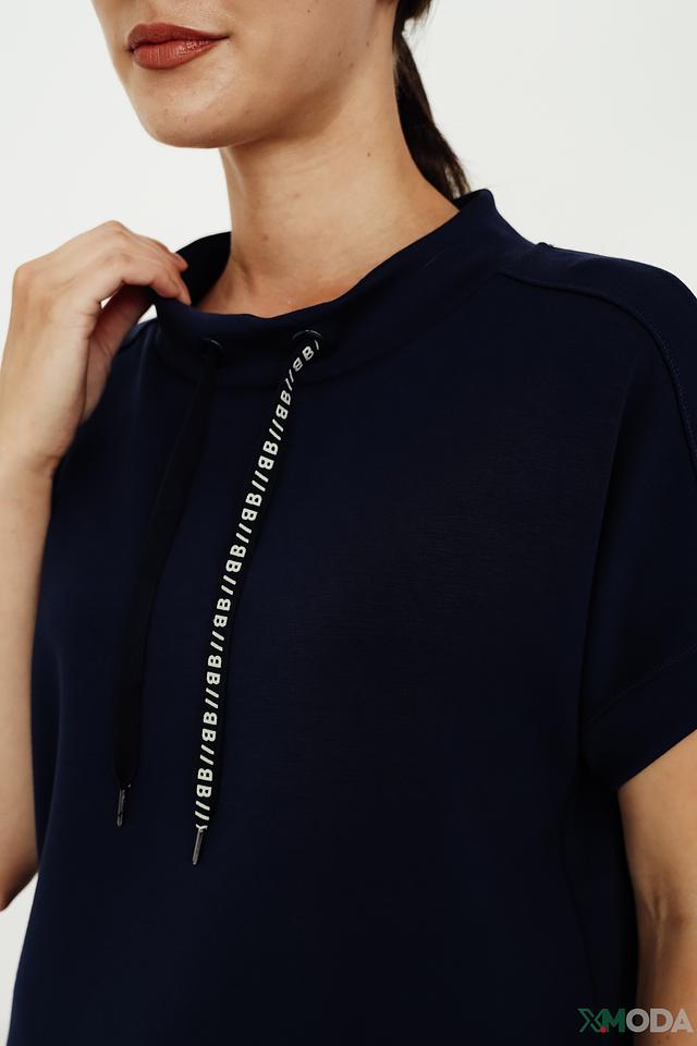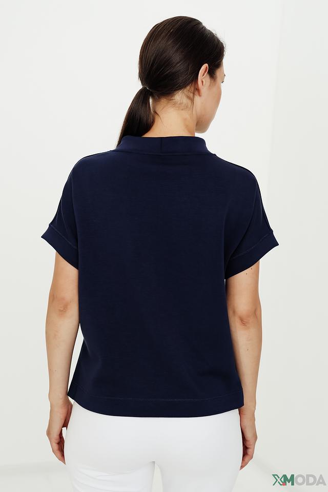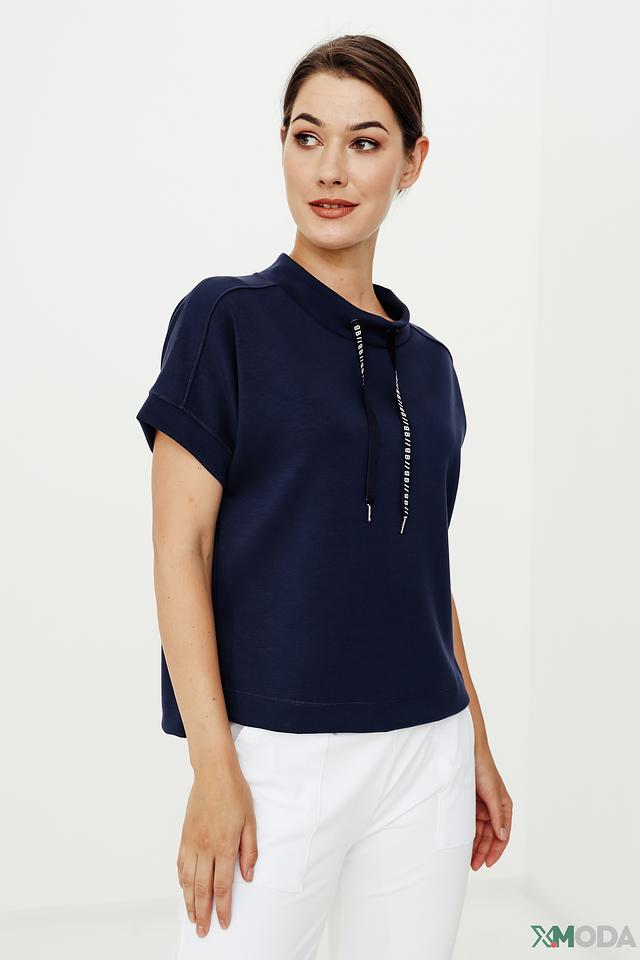 Синий пуловер от Bianca с коротким рукавом и молнией на воротнике-стойке. Модель выполнена из мягкой вискозы с добавлением полиэстера и эластана, обеспечивающих комфорт и хорошую посадку. Состав: вискоза 48%, полиэстер 45%, эластан 7%
