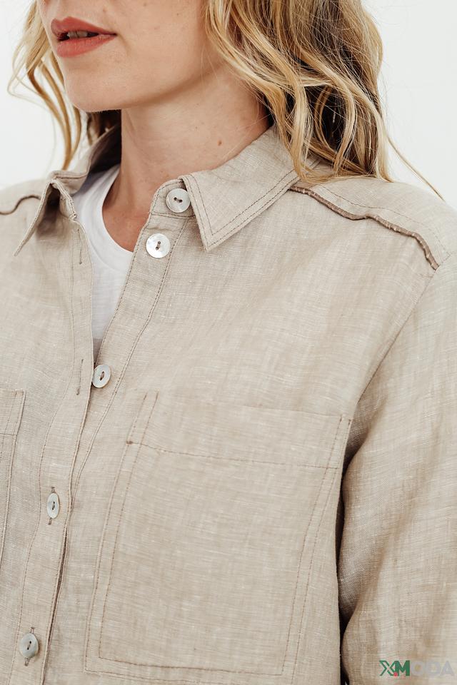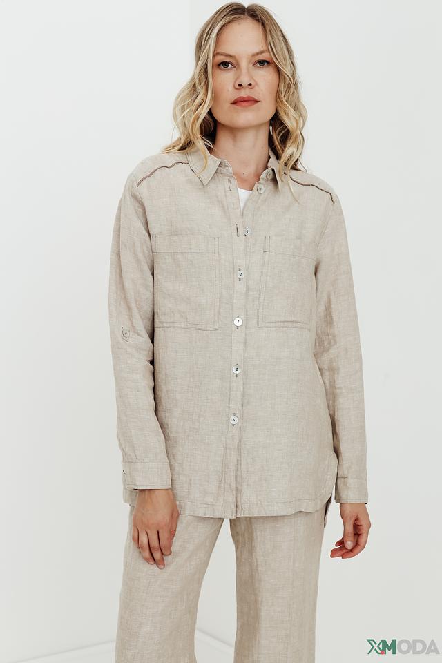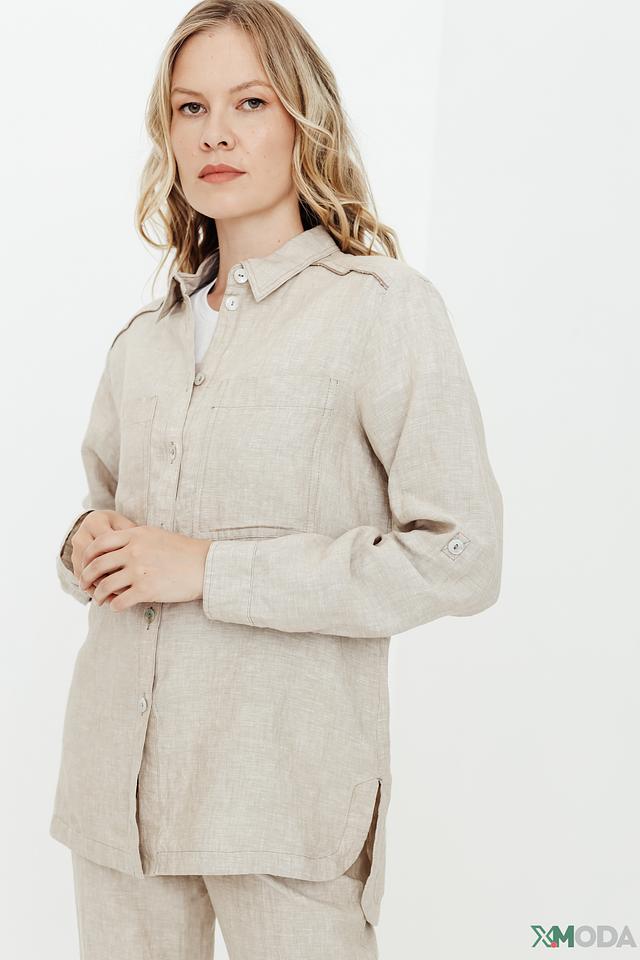Бежевая рубашка Bianca из 100% льна – стильное и комфортное решение для создания повседневных образов. Прямой крой и длинный рукав обеспечивают свободу движений, а накладные карманы добавляют функциональности. Состав: лен 100%