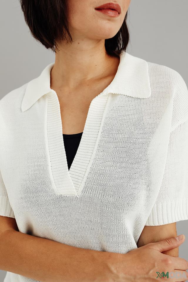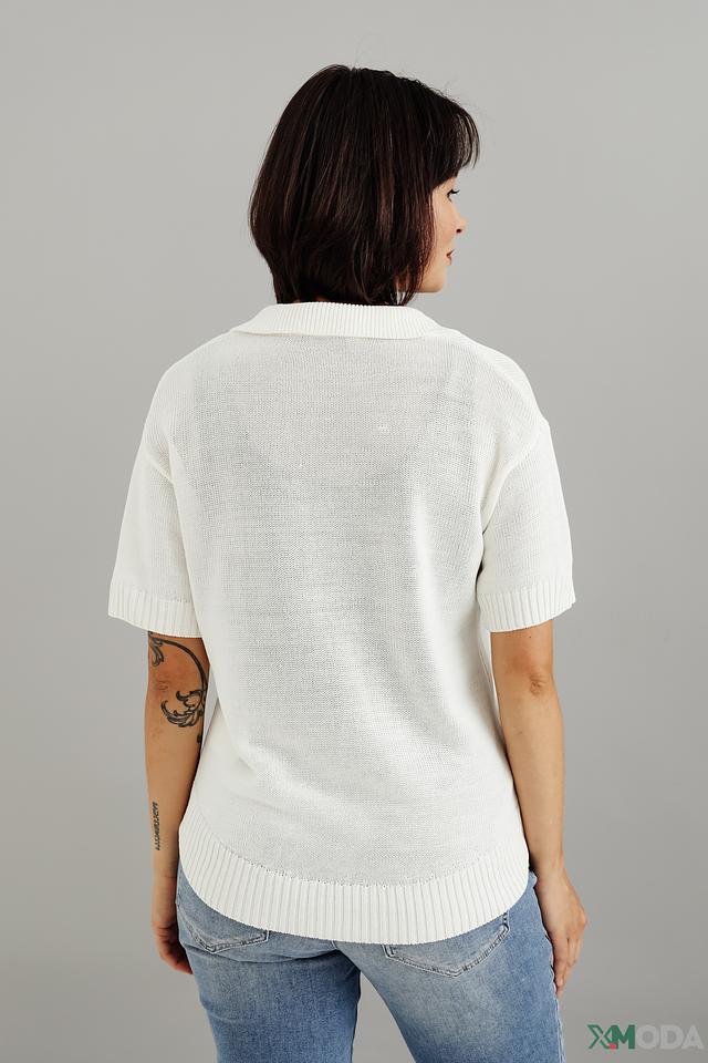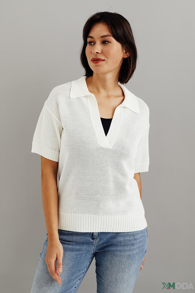 Белый пуловер от Bianca с короткими рукавами и воротником-поло станет отличным дополнением к вашему гардеробу. Модель выполнена из мягкой и приятной к телу вискозы, обеспечивая комфорт в течение всего дня. Состав: вискоза 65%, полиамид 35%