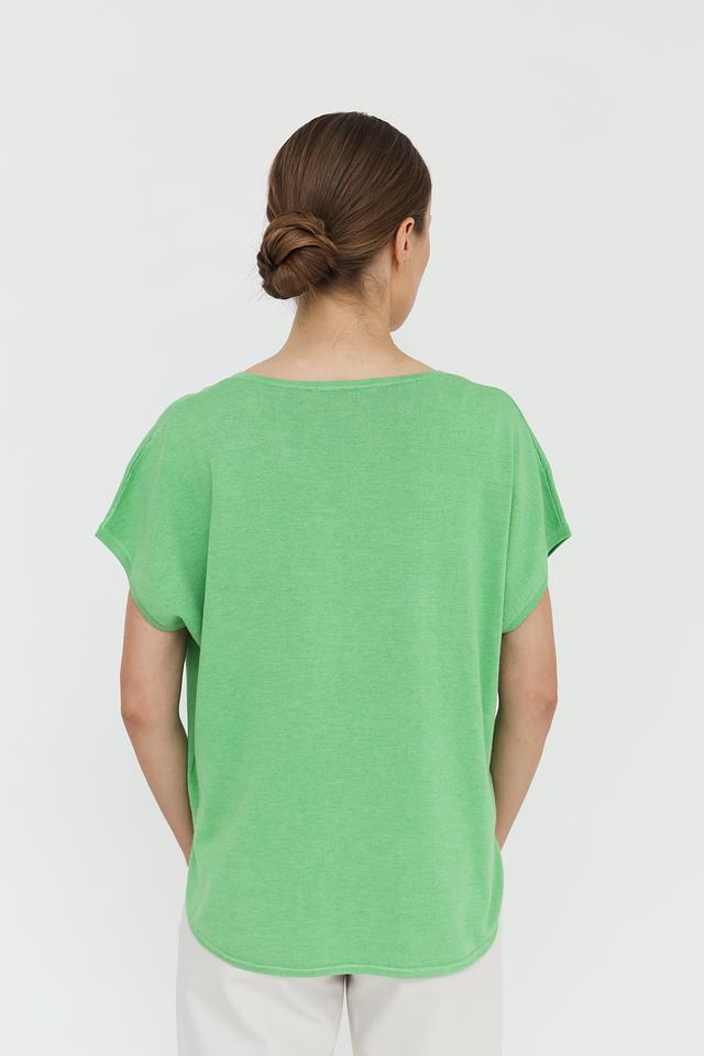 Жилет имеет прямой крой, V-образный вырез и короткие рукава, что обеспечивает свободу движений и комфорт в носке. Яркий зелёный цвет добавит свежести и оригинальности вашему образу.