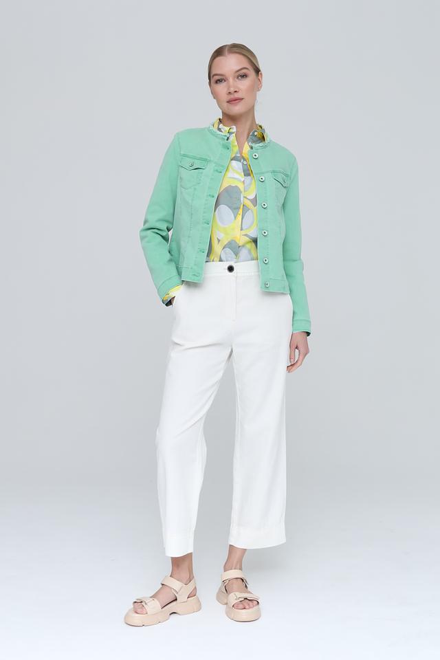 Этот жакет от Bianca выполнен в нежном мятном цвете и станет отличным выбором для создания модных и комфортных образов. Модель имеет классический джинсовый крой с длинными рукавами и застежкой на пуговицы.