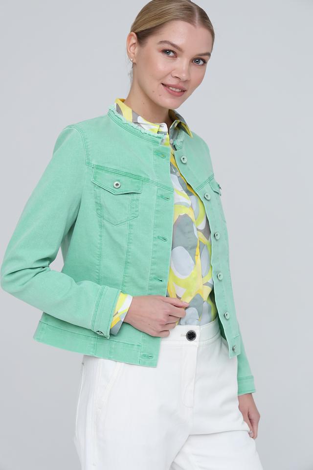 Жакет Bianca цвета мяты – это стильная и удобная модель в джинсовом стиле. Классический крой и аккуратный воротник с декоративной оборкой делают этот жакет универсальным дополнением к любому образу. Состав: хлопок 70%, полиэстер 27%, эластан 3%