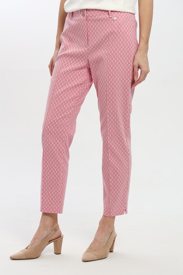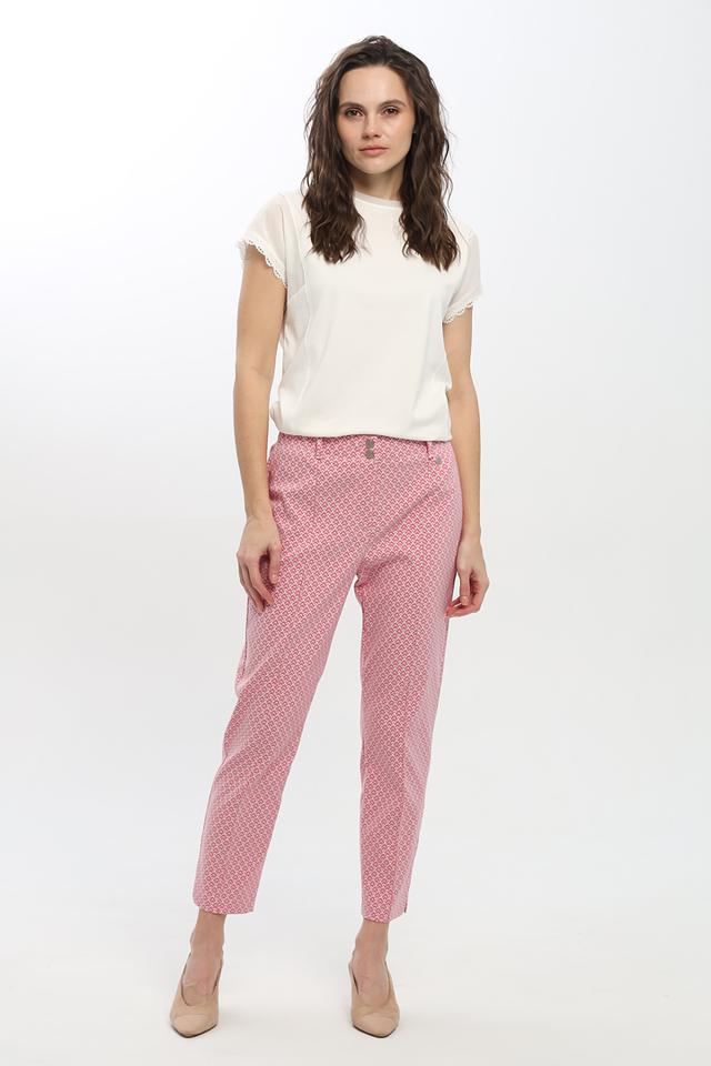 Женские брюки Bianca нежно-розового цвета с оригинальным цветочным принтом станут стильным дополнением к вашему гардеробу. Модель выполнена из качественного хлопка с добавлением полиамида и эластана для комфорта и удобства. Состав: хлопок 66%, полиамид 30%, эластан 4%