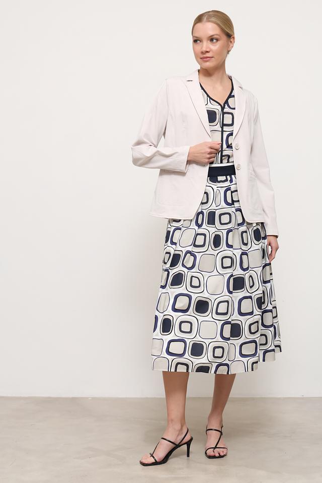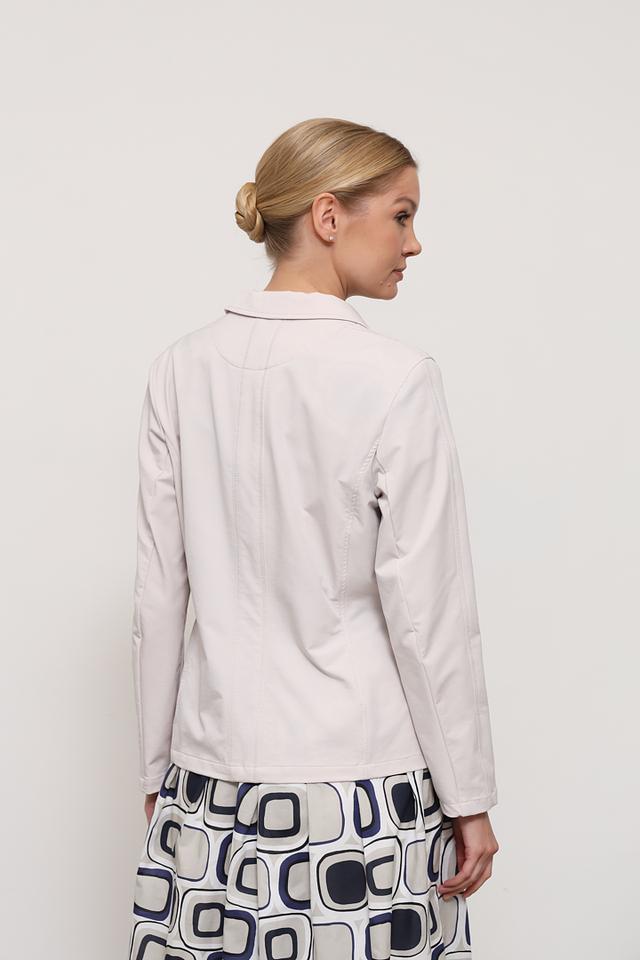 Бежевый жакет Bianca женского типа, выполненный из полиамида с добавлением эластана. Модель имеет приталенный силуэт, застежку на пуговицы и боковые карманы. Состав: полиамид 87%, эластан 13%