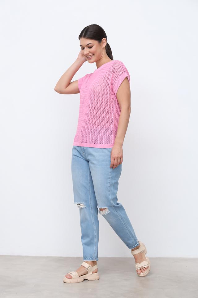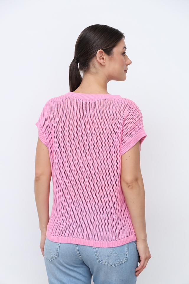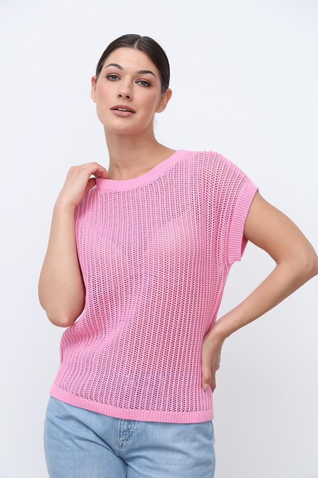 Розовый ажурный жилет Bianca из 100% хлопка станет стильным дополнением к вашему образу. Модель с короткими рукавами и округлым вырезом горловины идеально подходит для создания лёгких летних образов. Состав: хлопок 100%
