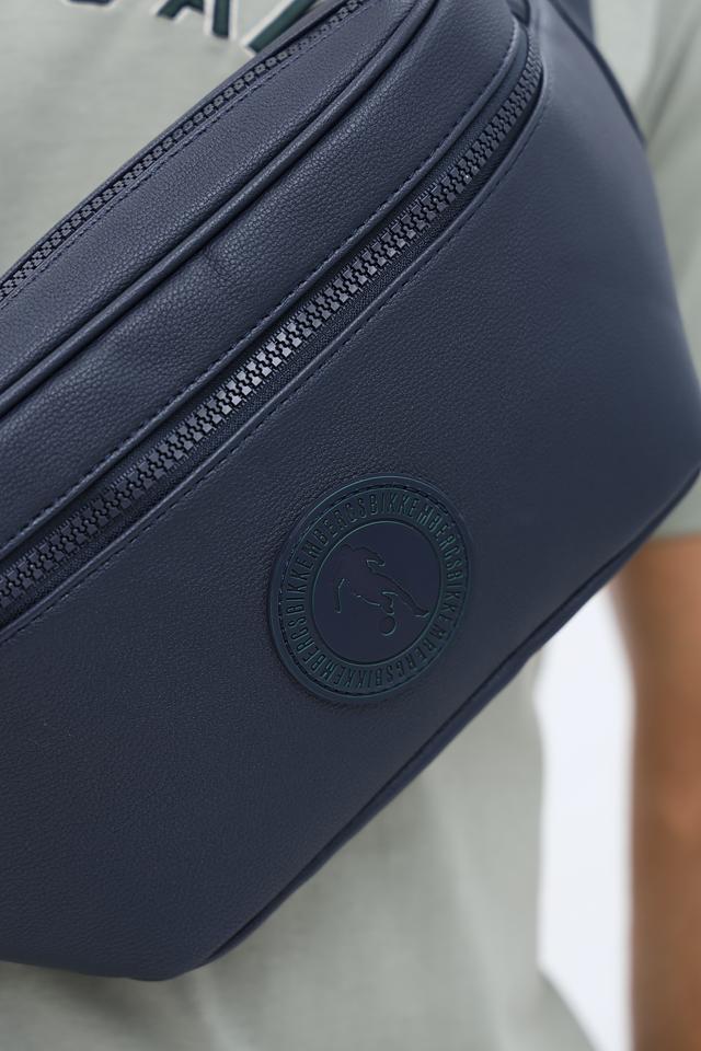Стильная поясная сумка Bikkembergs синего цвета выполнена из высококачественного полиуретана. Модель оснащена удобным регулируемым ремнем и надежной молнией, что обеспечивает комфорт и безопасность. Состав: полиуретан 100%