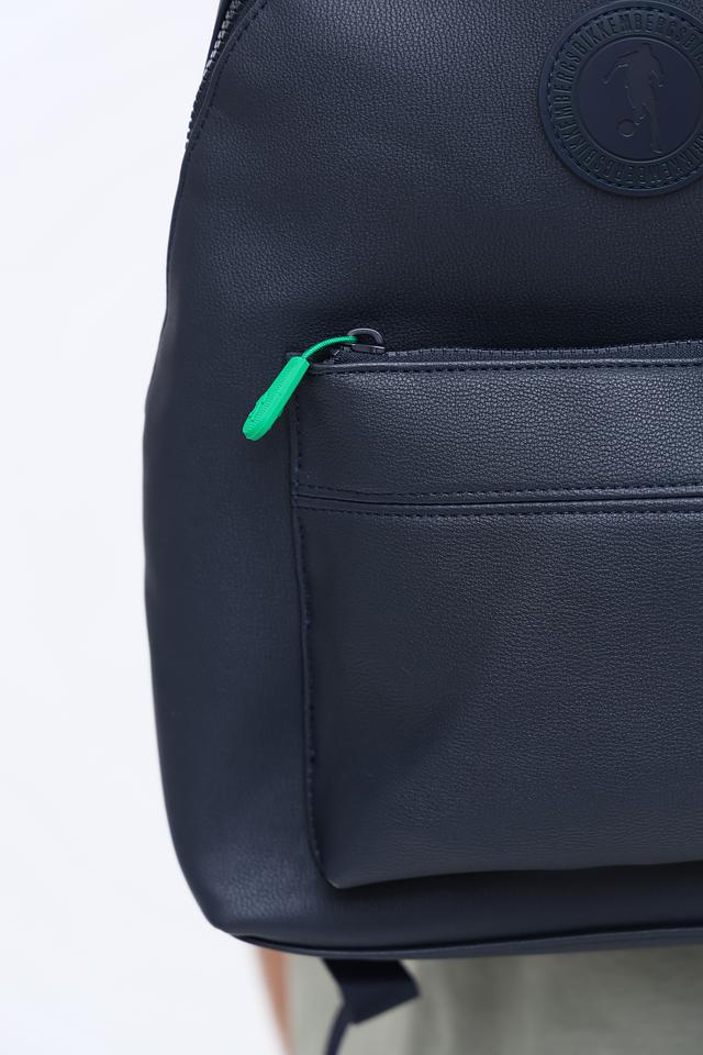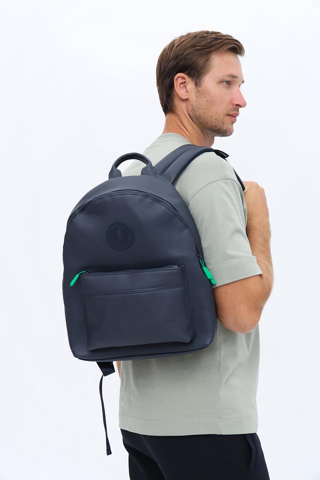Рюкзак изготовлен из высококачественного полиуретана, что обеспечивает его прочность и долговечность. Фасад рюкзака украшен рельефным логотипом бренда. Передний карман с яркой салатовой молнией добавляет акцент и обеспечивает быстрый доступ к необходимым вещам.