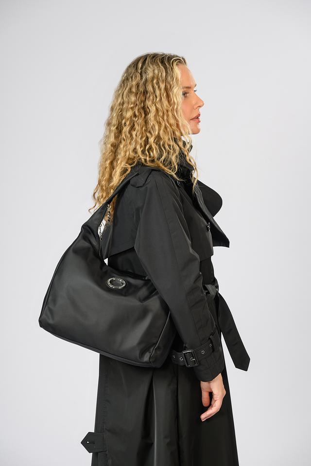 Сумка имеет лаконичный дизайн, подчеркнутый фирменным логотипом бренда на лицевой стороне. Чёрный цвет делает её универсальной и подходящей к любому стилю одежды.