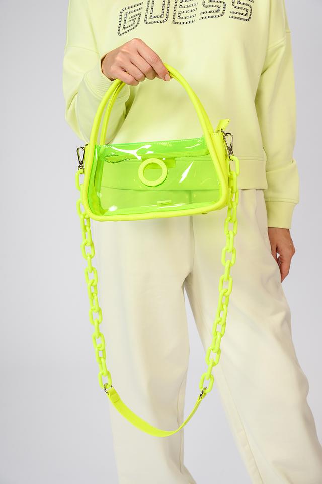 Стильная сумка Bikkembergs лаймового цвета выполнена из прозрачного ПВХ с ярким неоновым кантом. Аксессуар оснащен удобным плечевым ремнем-цепочкой и надежной застежкой-молнией. Состав: поливинилхлор 80%, полиуретан 20%