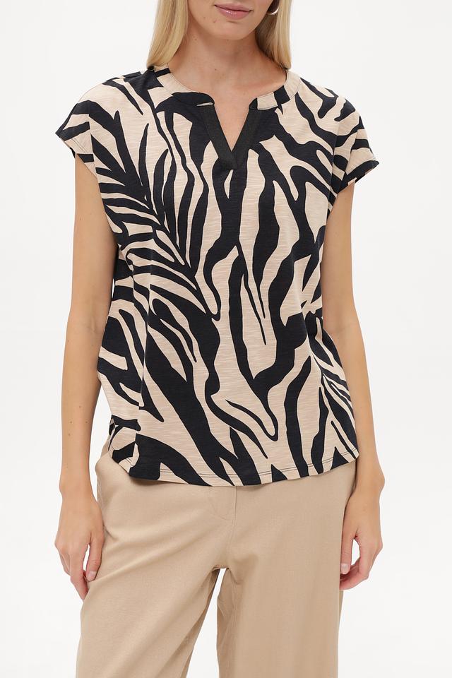 Блузка Betty Barclay черного и бежевого цвета с оригинальным принтом "зебра" станет стильным дополнением вашего гардероба. Модель выполнена из мягкой и приятной к телу ткани, обеспечивающей комфорт в течение дня. Состав: хлопок 50%, модал 50%