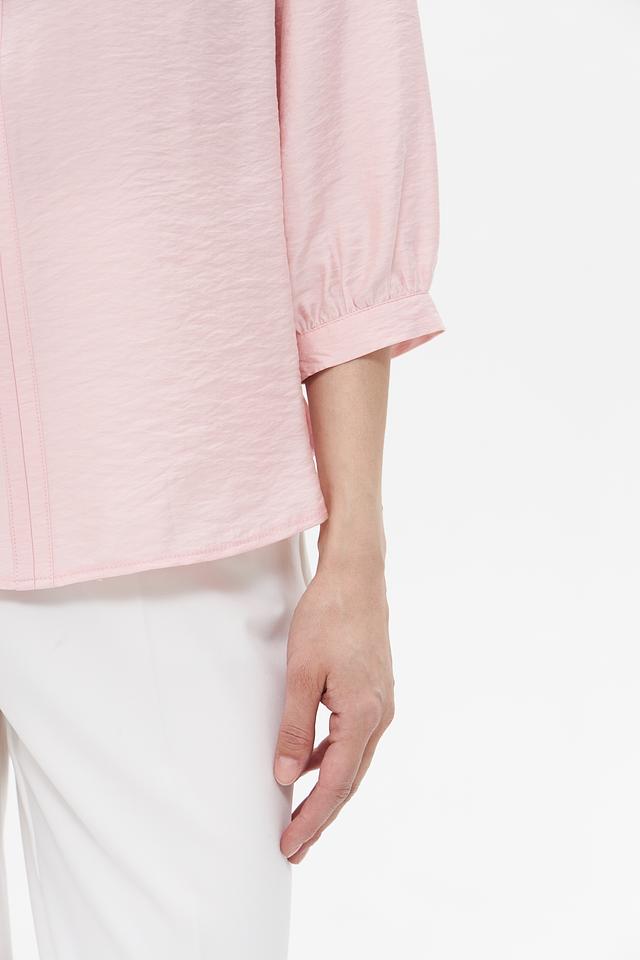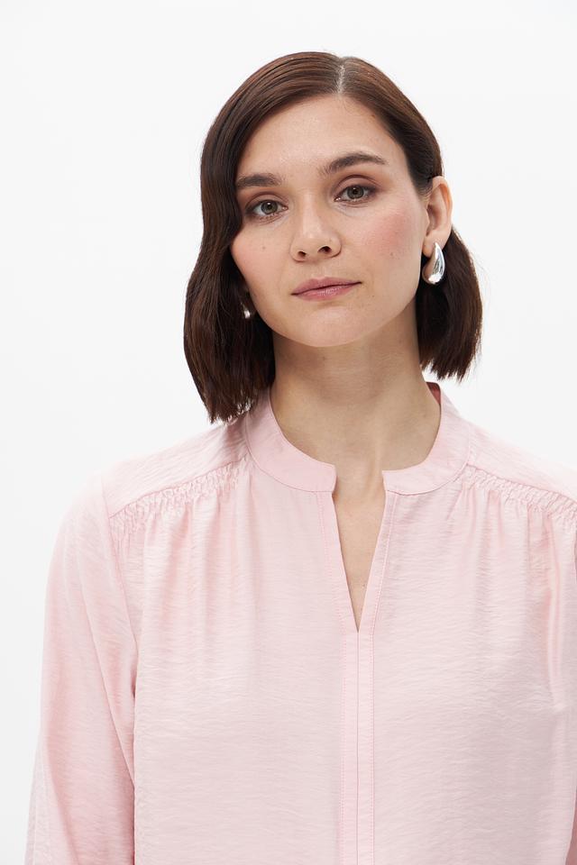 Блуза Bianca нежно-розового цвета с рукавами-фонариками и воротником-стойкой станет отличным дополнением к вашему гардеробу. Изготовлена из приятной на ощупь ткани с добавлением лиоцела, обеспечивающей комфорт и воздухопроницаемость. Состав: лиоцел 84%, полиамид 16%
