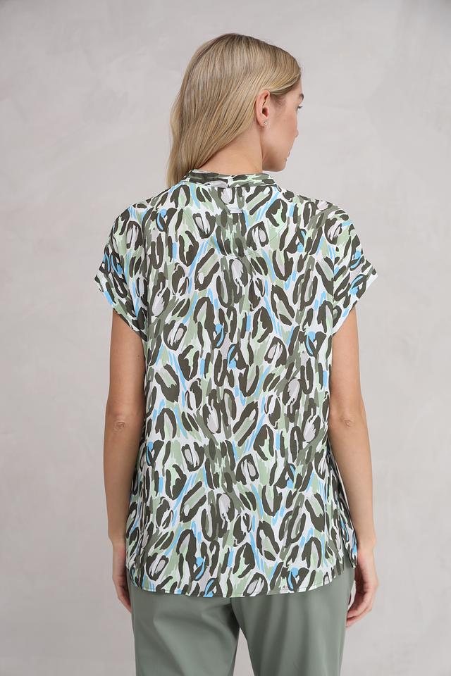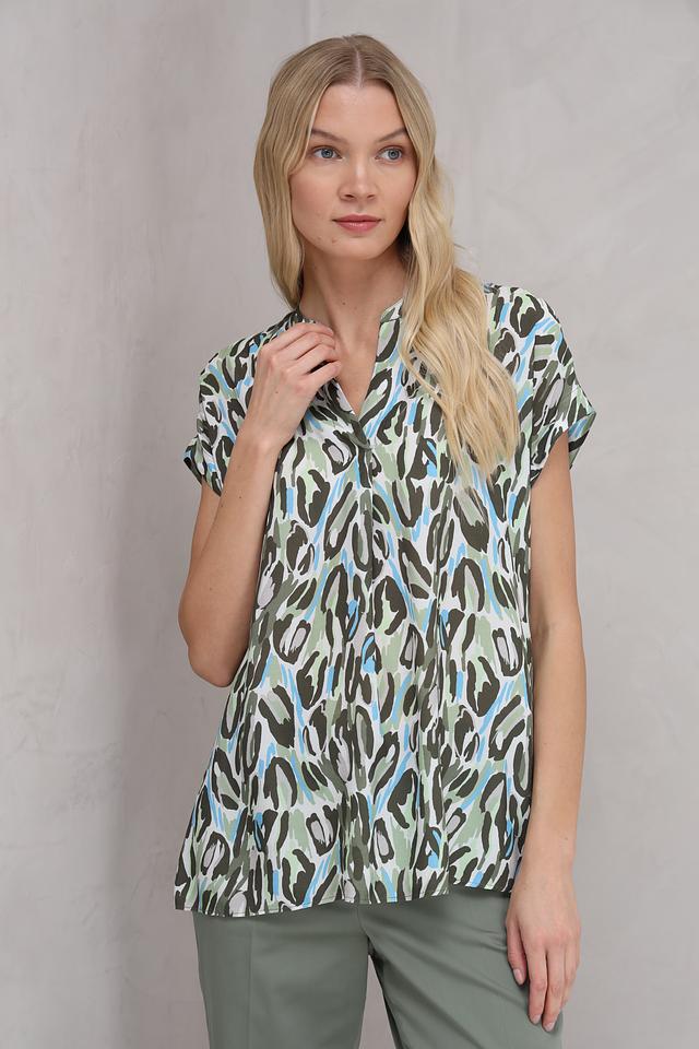 Блуза Bianca зеленого и голубого цвета с оригинальным леопардовым принтом. Изготовлена из 100% вискозы, обеспечивающей комфорт и приятные ощущения при носке. Отличный выбор для создания стильного и легкого образа. Состав: вискоза 100%